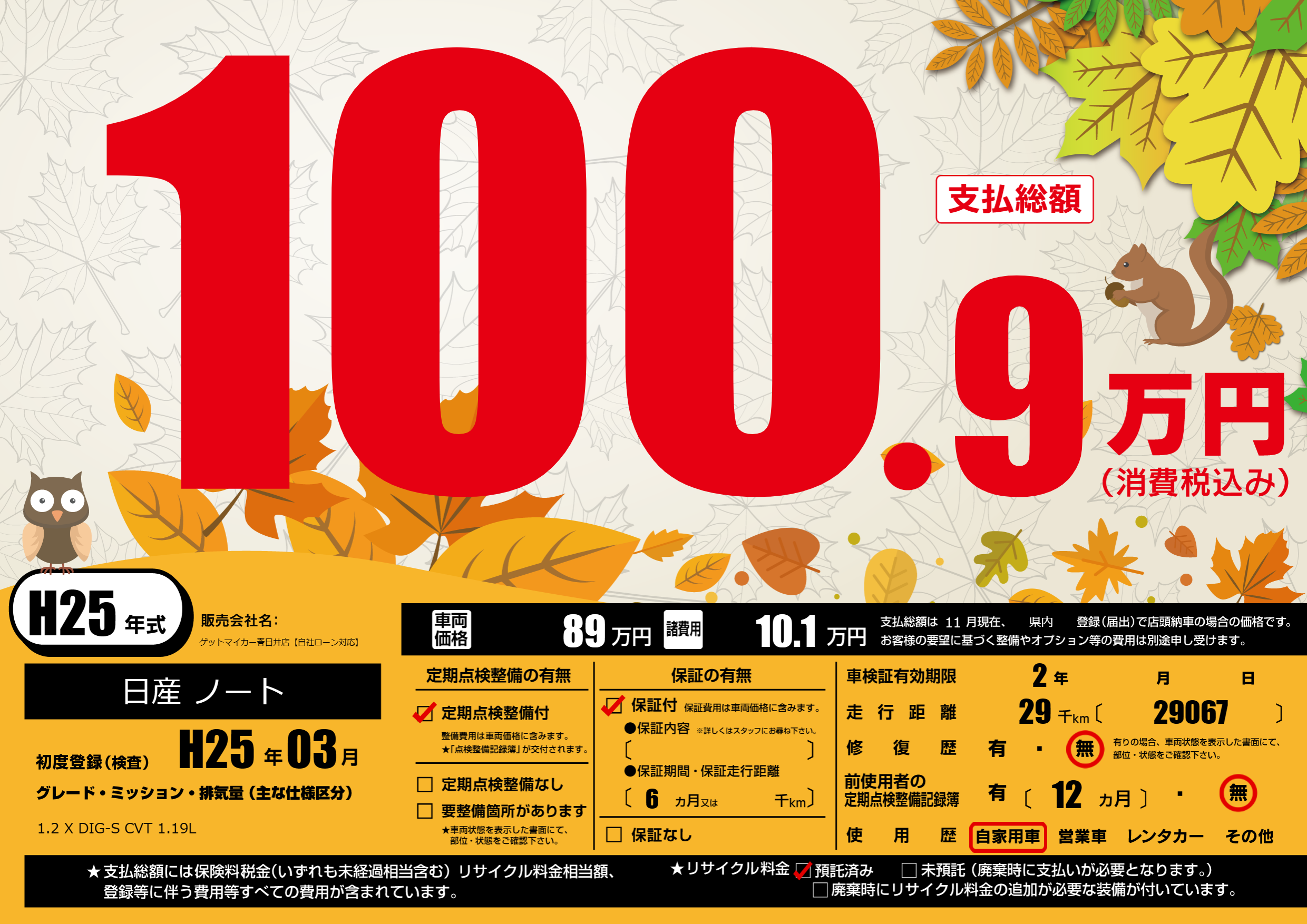 | 車名 | 日産 ノート | グレード ミッション 排気量 |