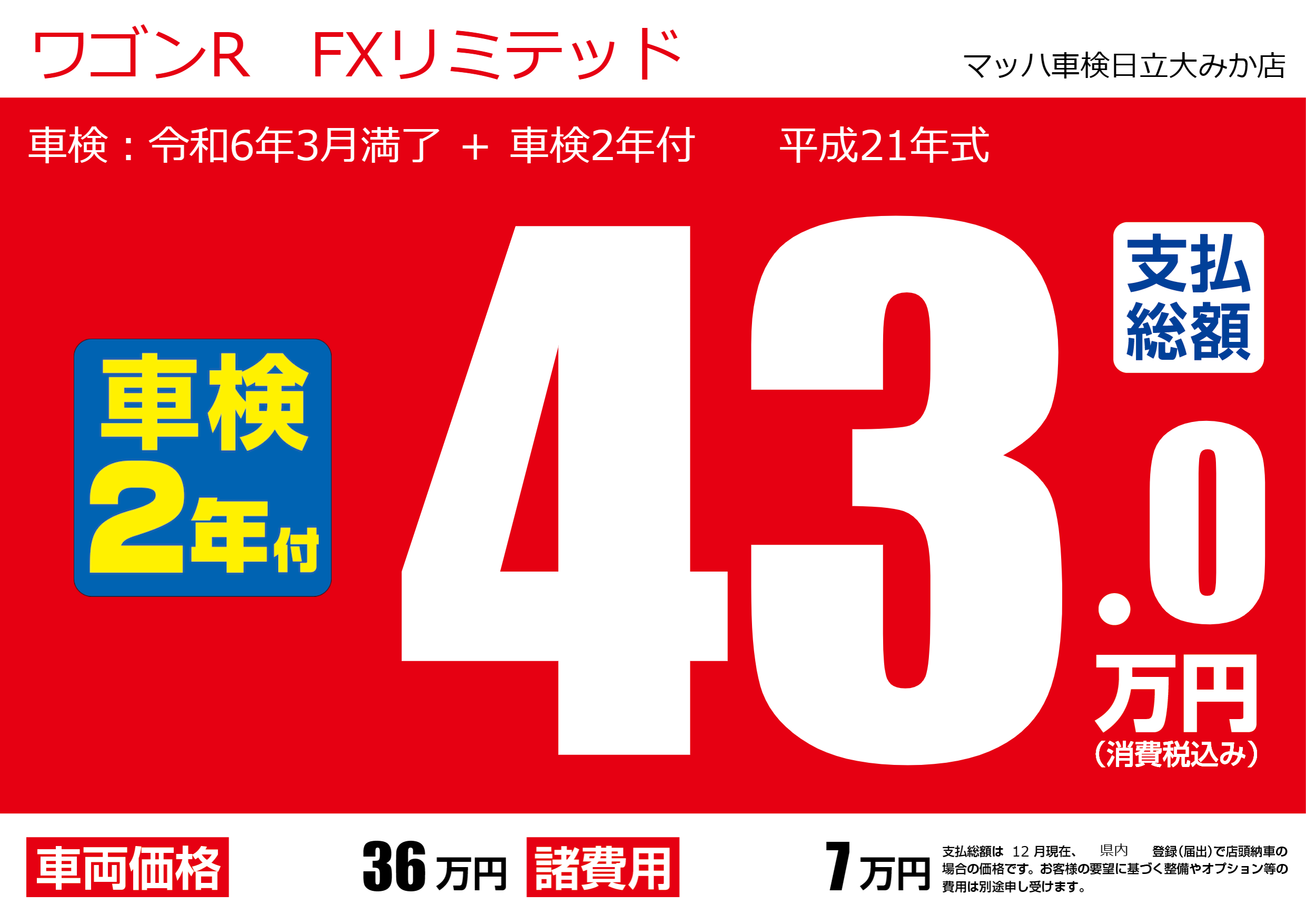 | 車名 | ワゴンR FXリミテッド | グレード ミッション 排気量 |