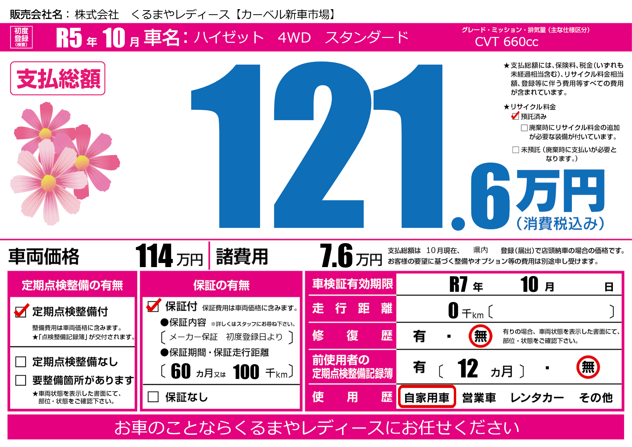 | 走行キロ | - | 初年度登録 | R5年10月 |