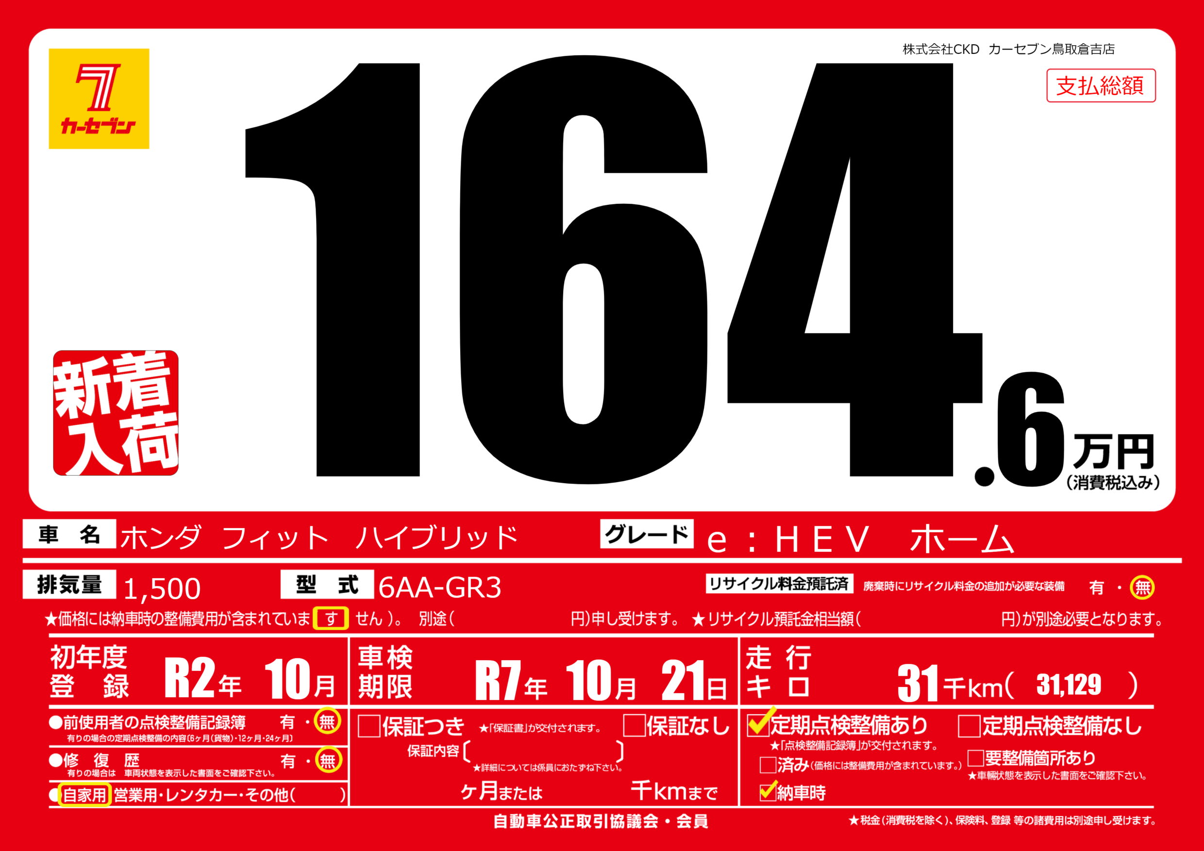 | 車検制限 | R7年 10月 21日 | ||