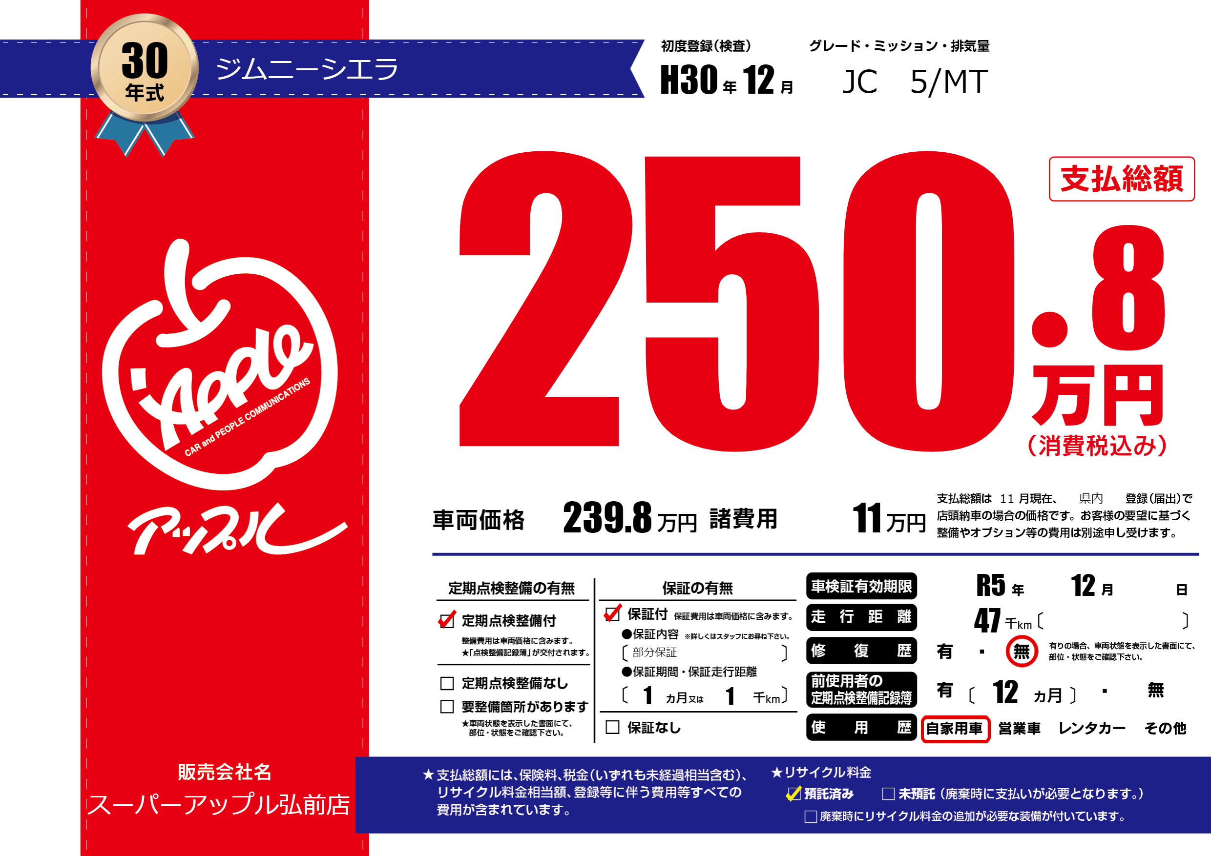 | 車名 | ジムニーシエラ | グレード ミッション 排気量 |