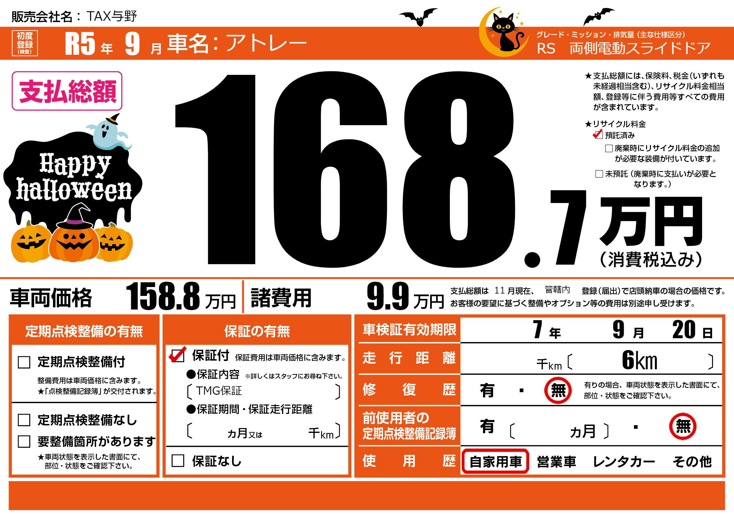 | 走行キロ | - | 初年度登録 | R5年9月 |