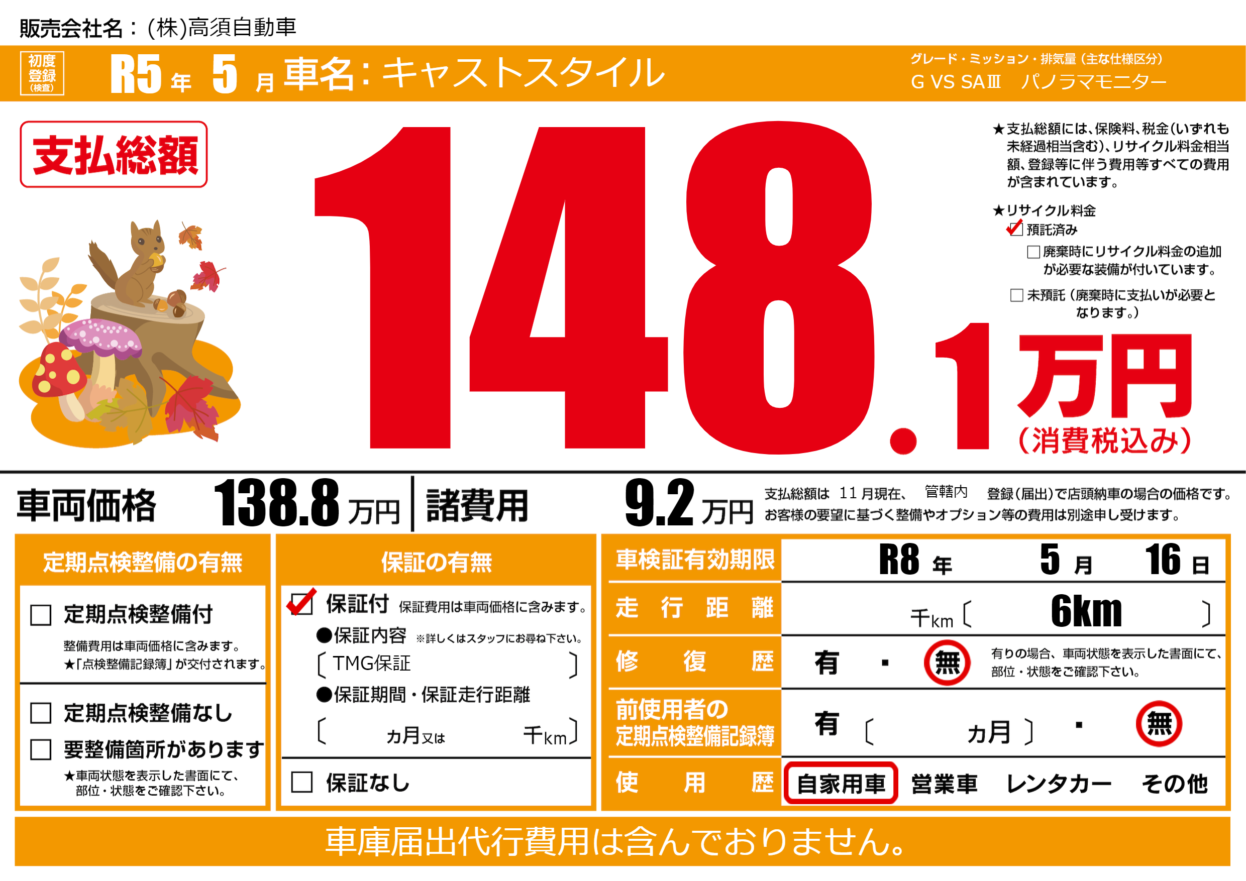 | 車検制限 | R8年 5月 16日 | ||