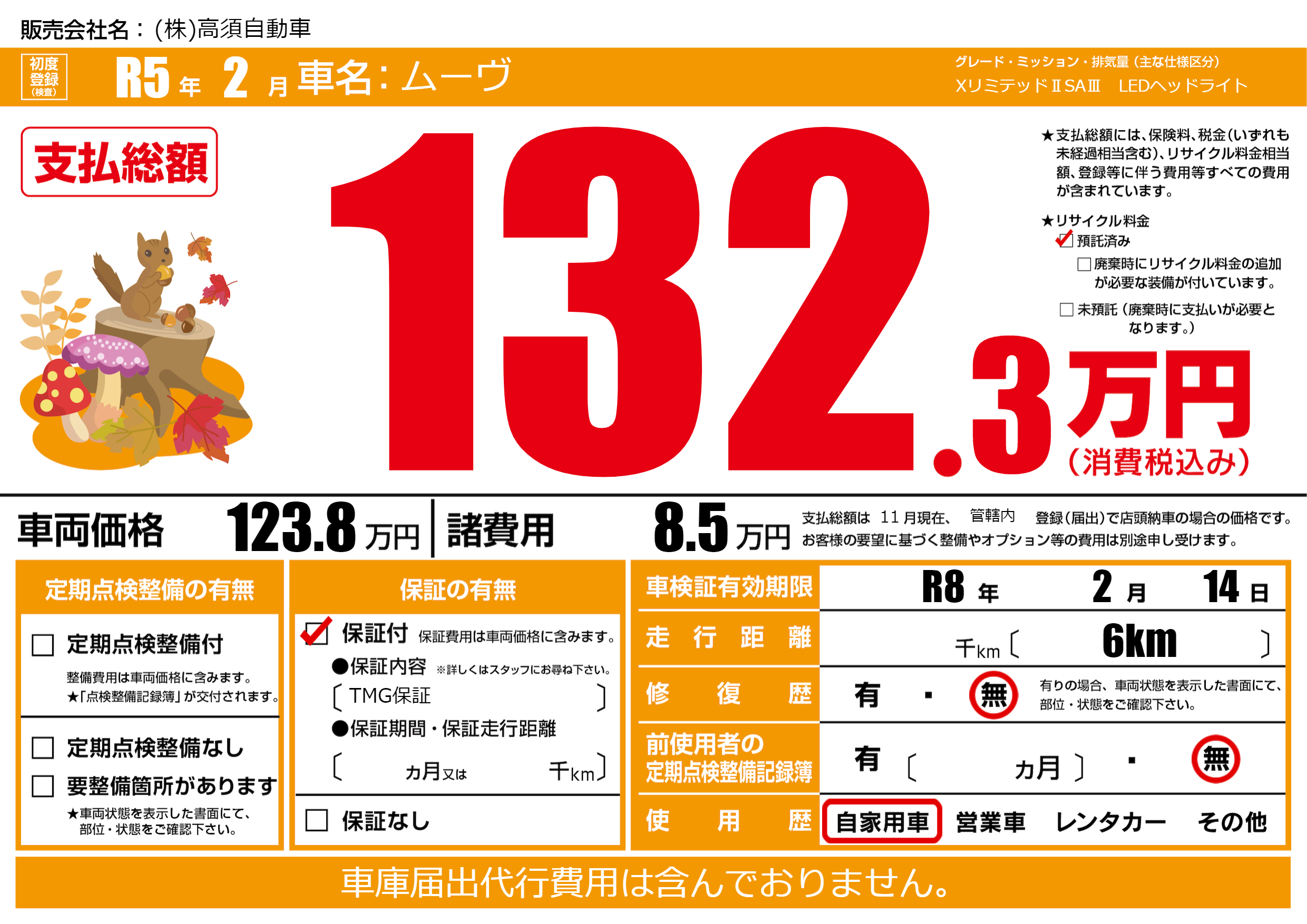 | 車検制限 | R8年 2月 14日 | ||