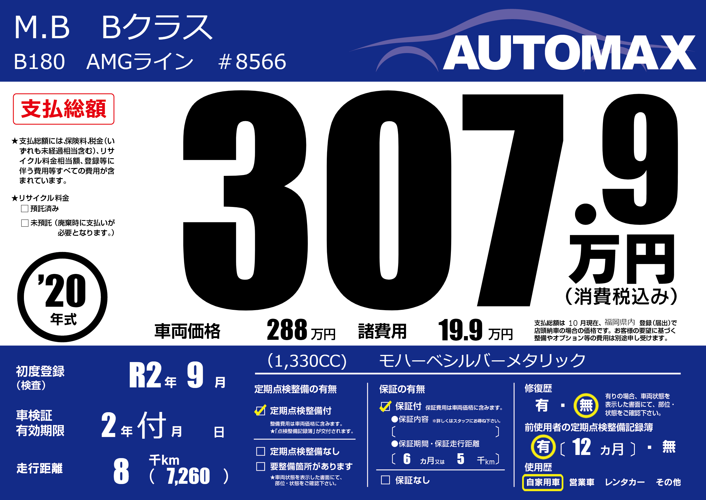 | 車名 | M.B Bクラス | グレード ミッション 排気量 |