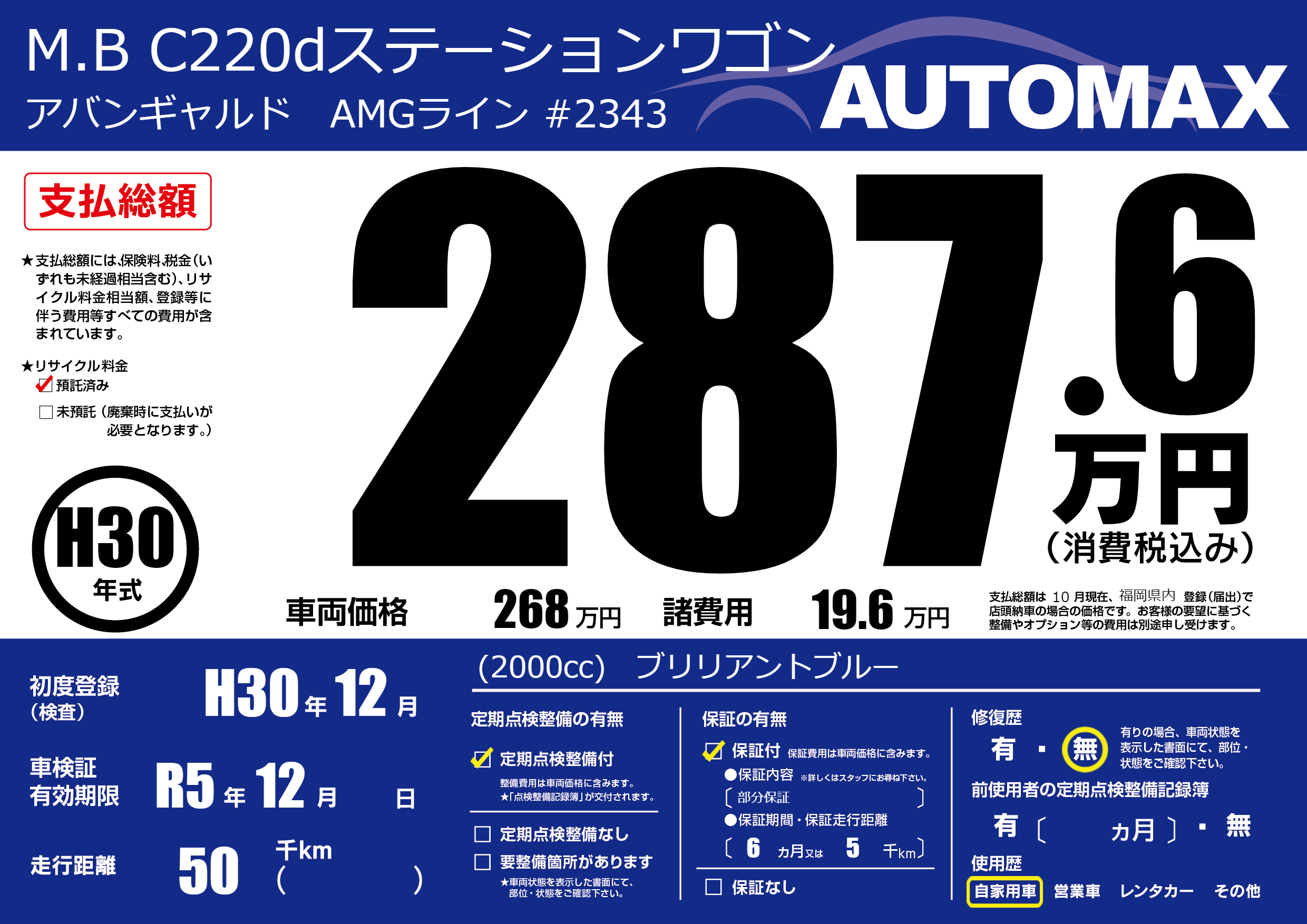 | 車名 | M.B C220dステーションワゴン | グレード ミッション 排気量 |