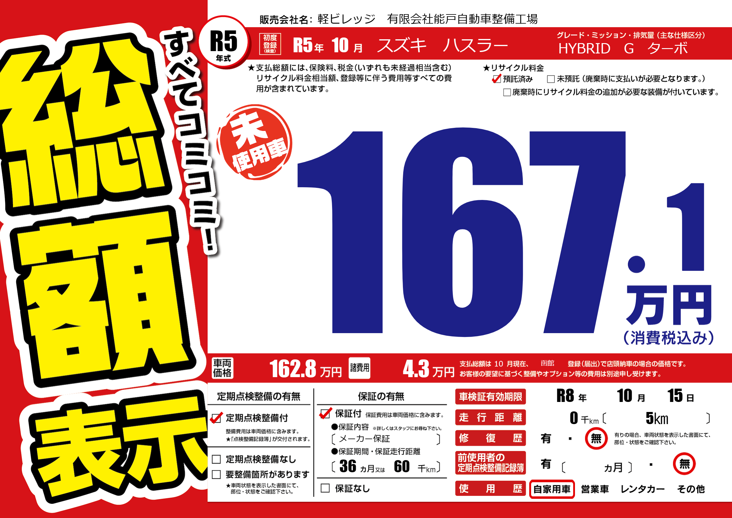 なし | 車検制限 | R8年10月15月 |