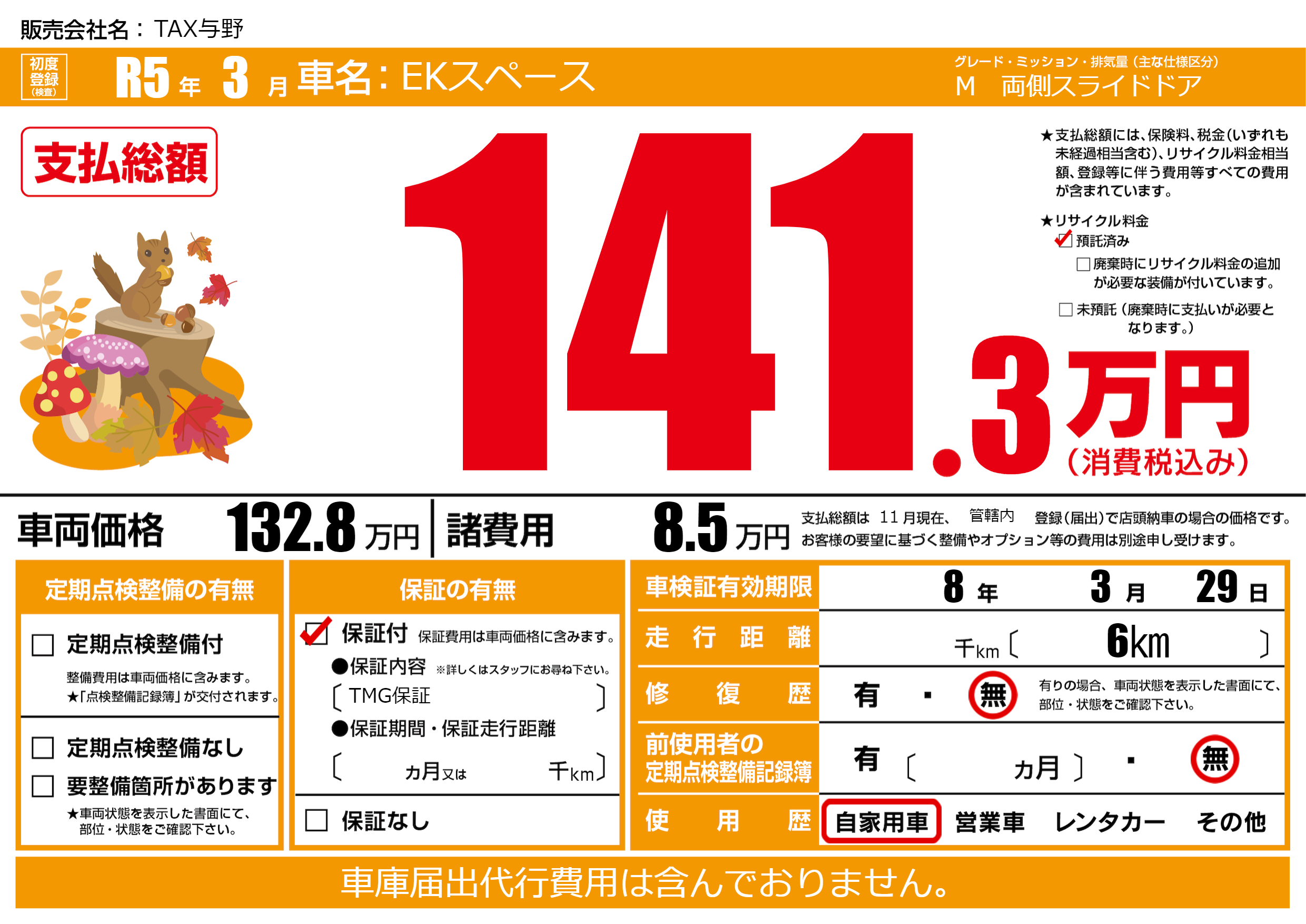 | 走行キロ | - | 初年度登録 | R5年3月 |
