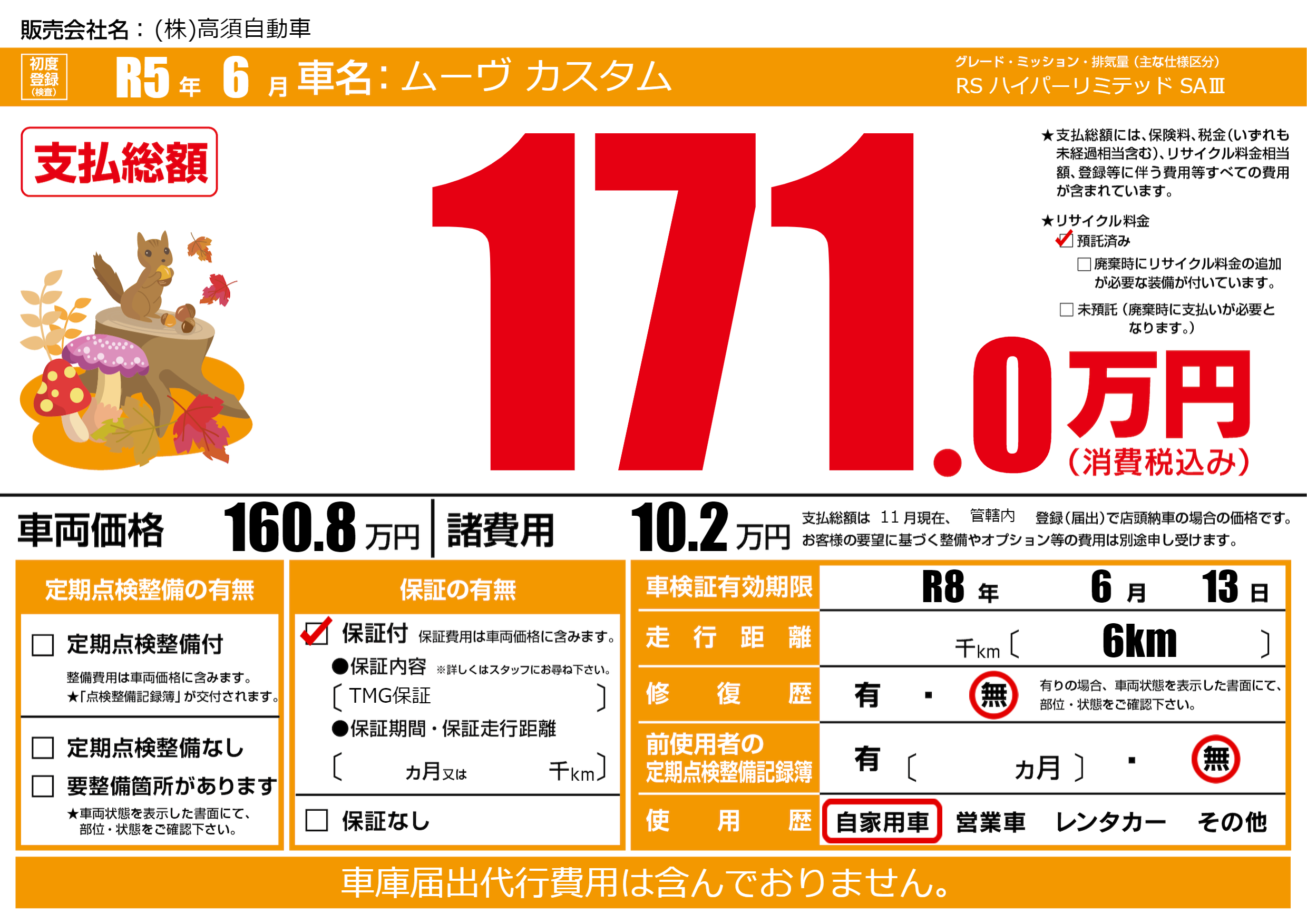 | 走行キロ | - | 初年度登録 | R5年6月 |