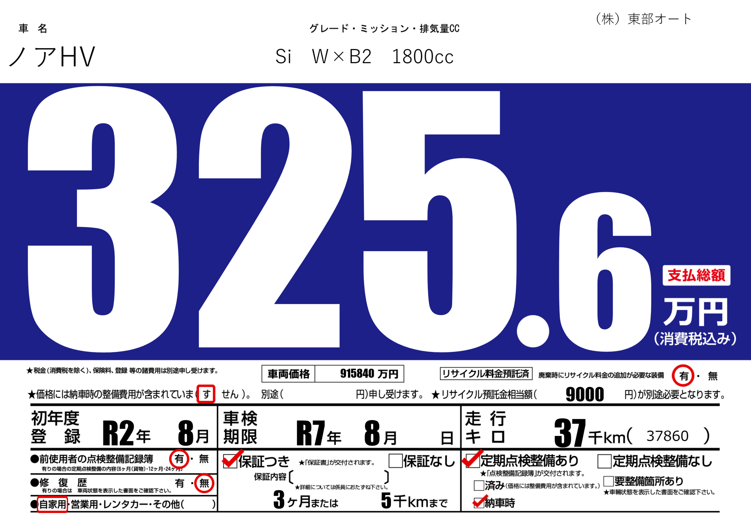 | 定期点検整備 | 定期点検整備あり 納車時あり | ||