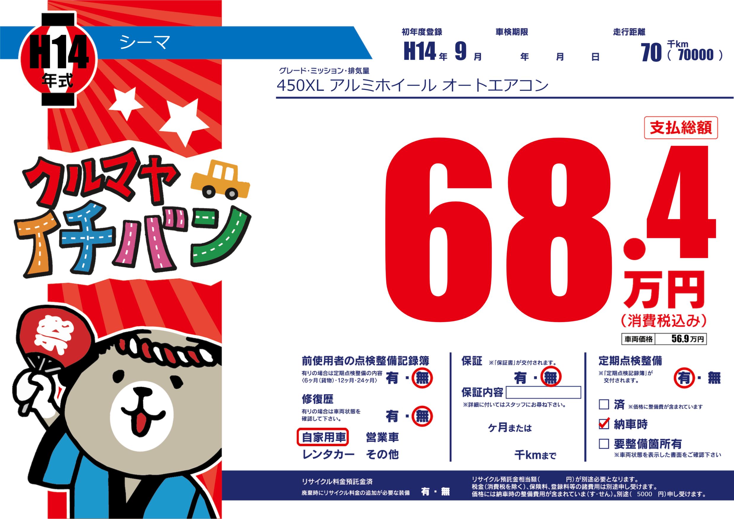 | 定期点検整備 | 定期点検整備あり 納車時あり | ||