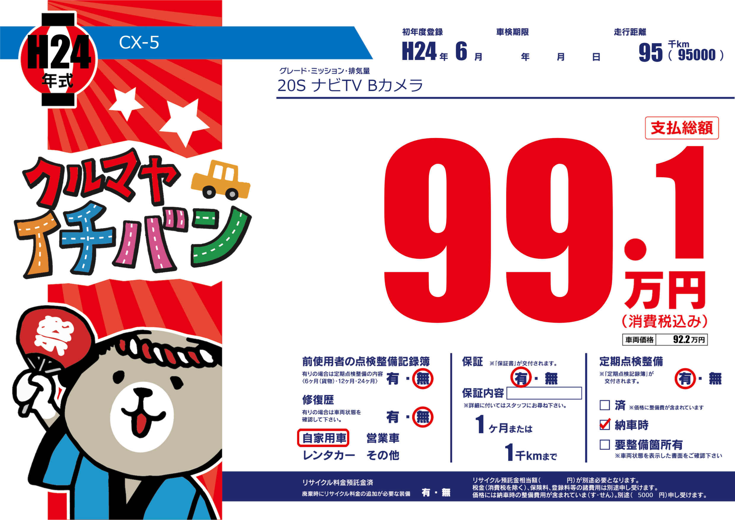 | 定期点検整備 | 定期点検整備あり 納車時あり | ||