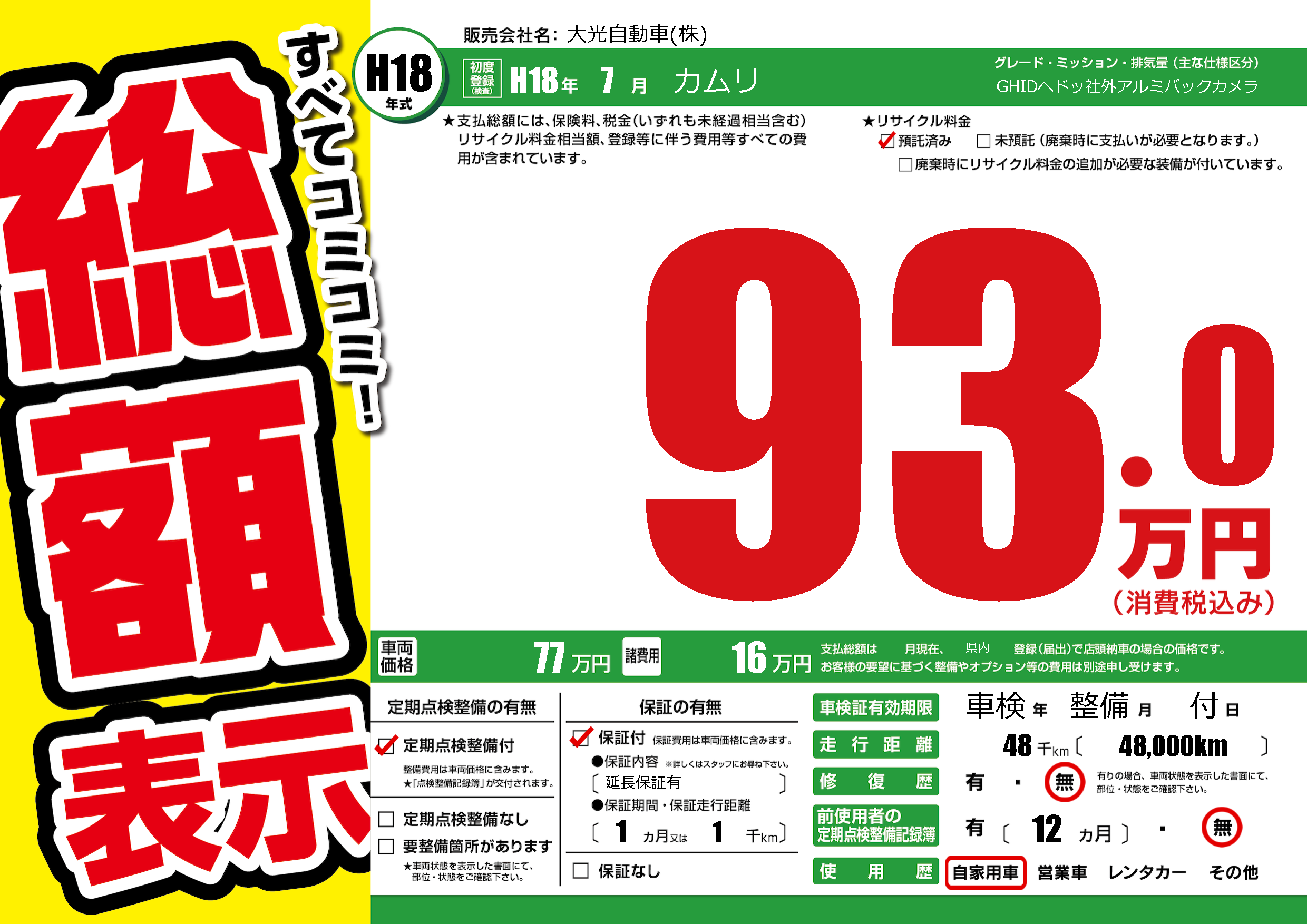 | 走行キロ | 4.8万km | 初年度登録 | H18年7月 |