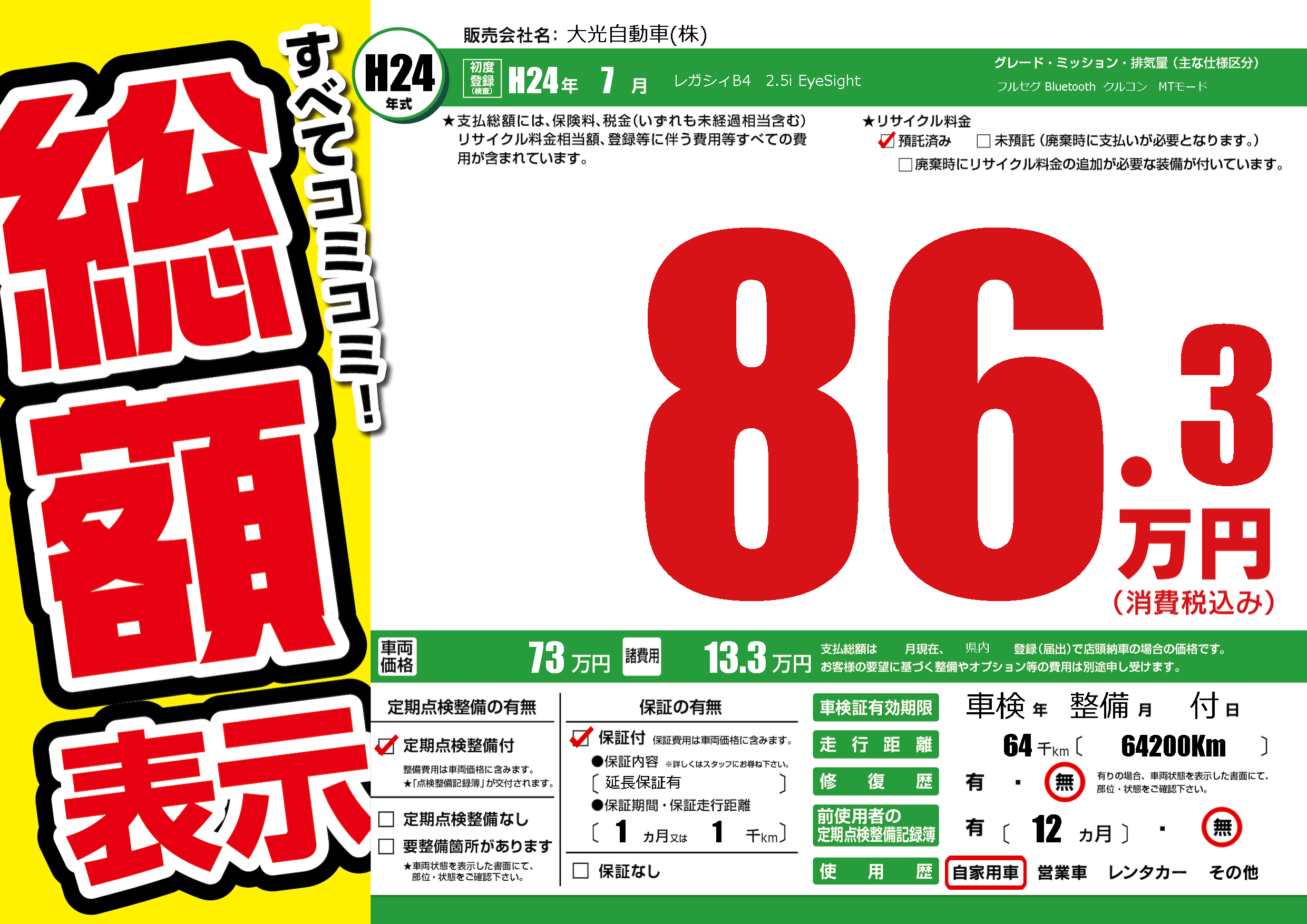 | 定期点検整備 | 定期点検整備あり | ||