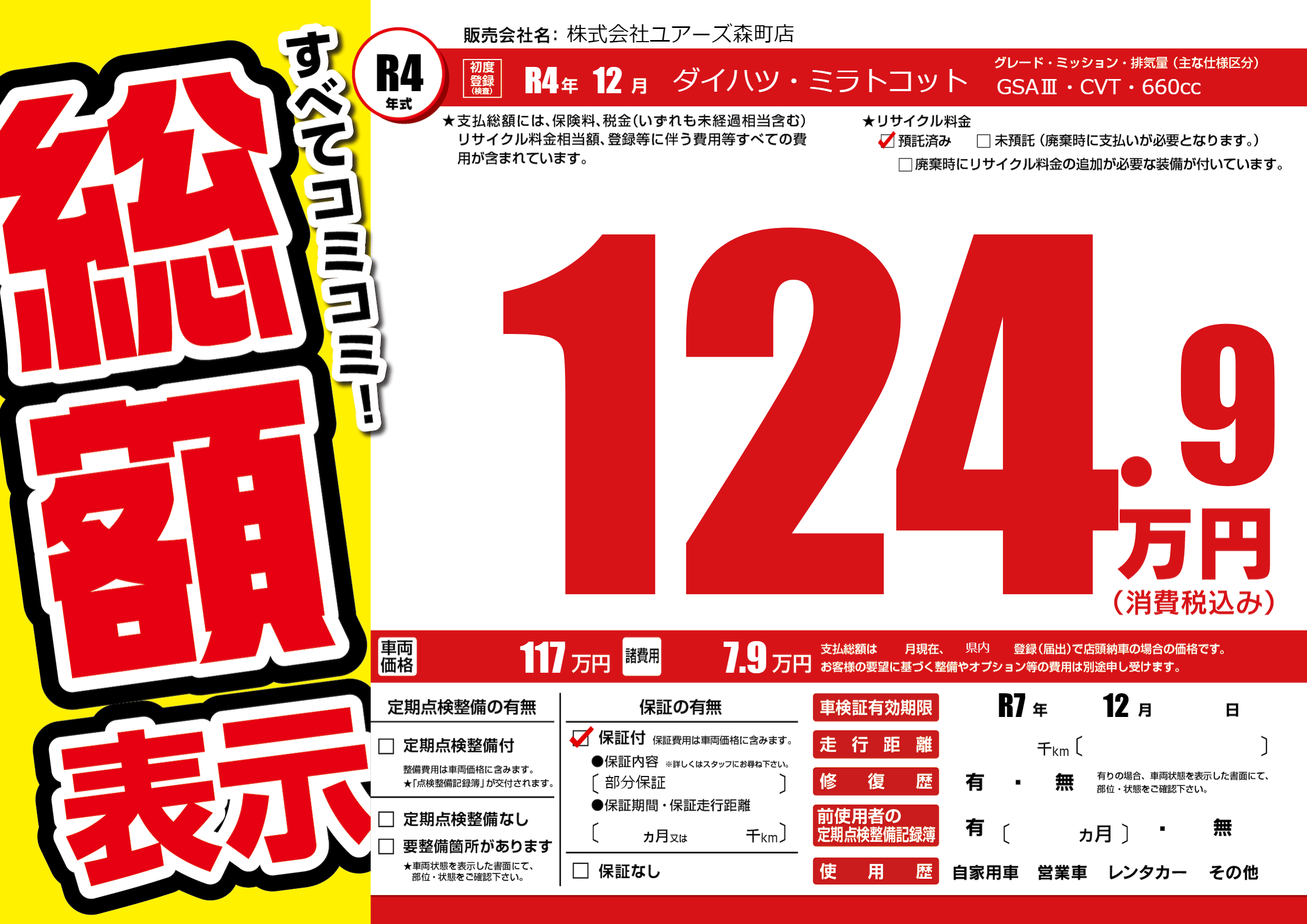 | 走行キロ | - | 初年度登録 | R4年12月 |