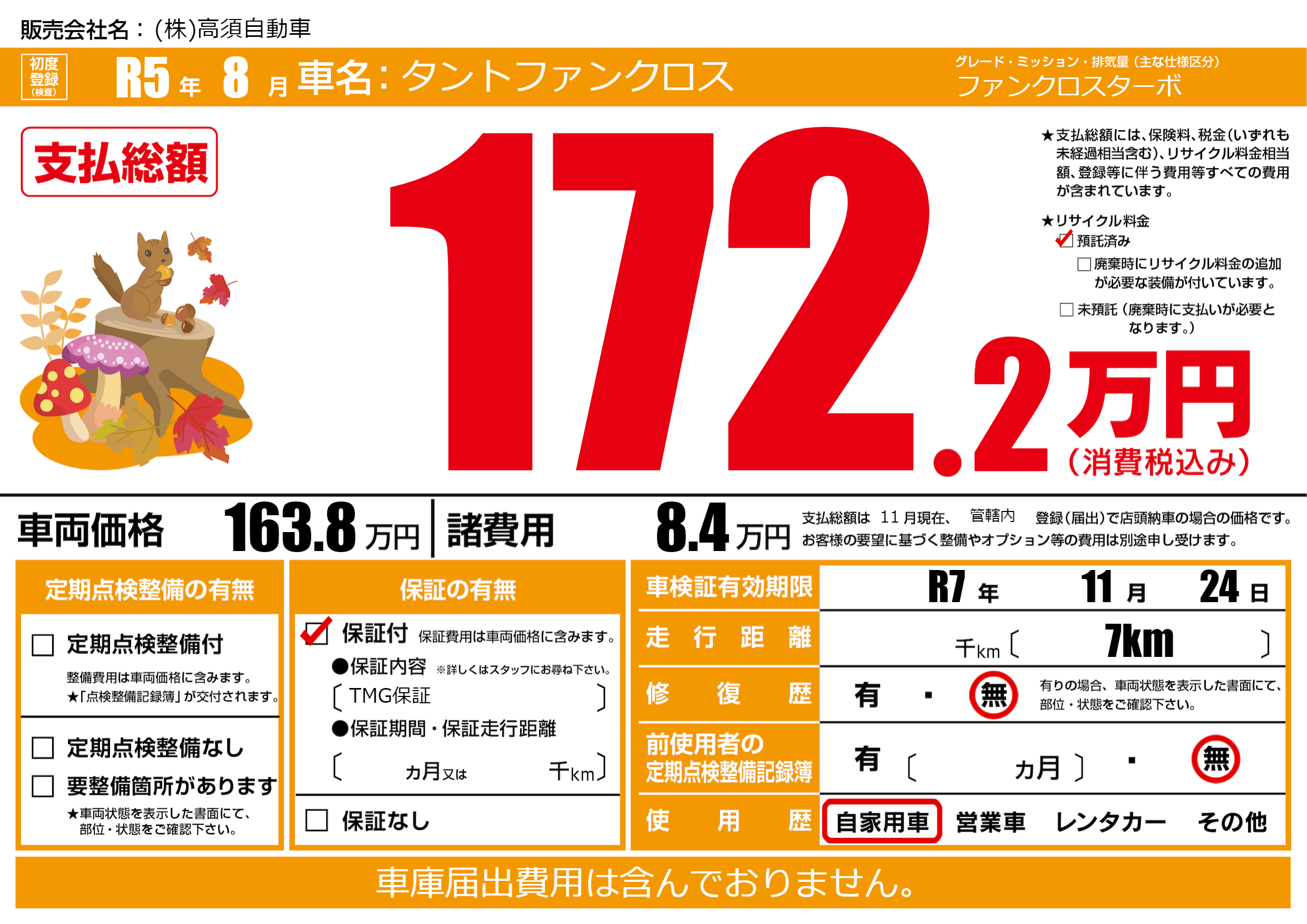 保証付き 保証内容(TMG保証) ---ヶ月または()千kmまで |