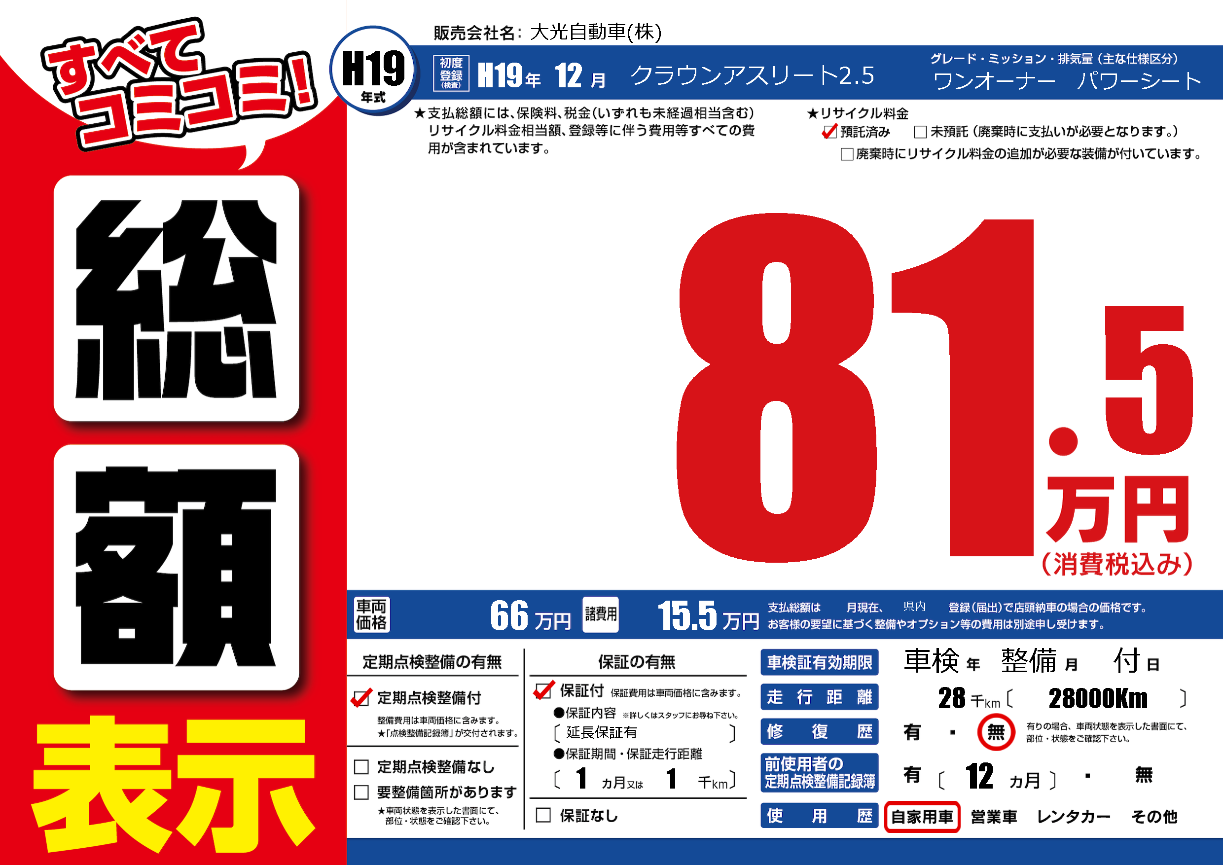 | 定期点検整備 | 定期点検整備あり | ||