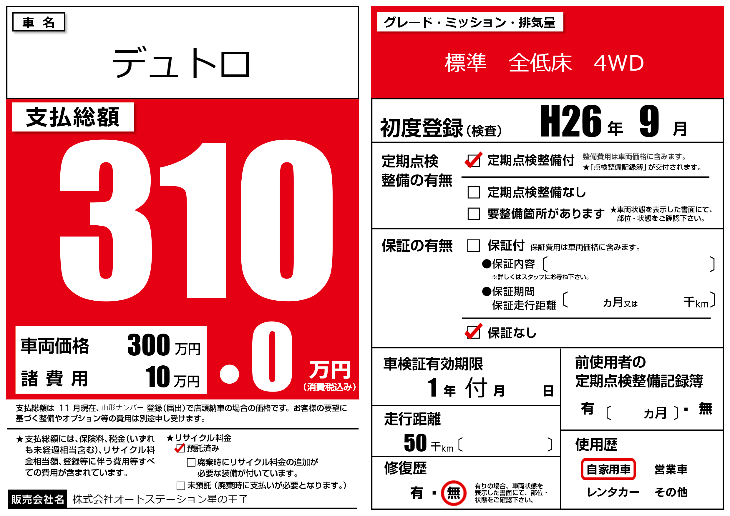 | 走行キロ | 5万km | 初年度登録 | H26年9月 |