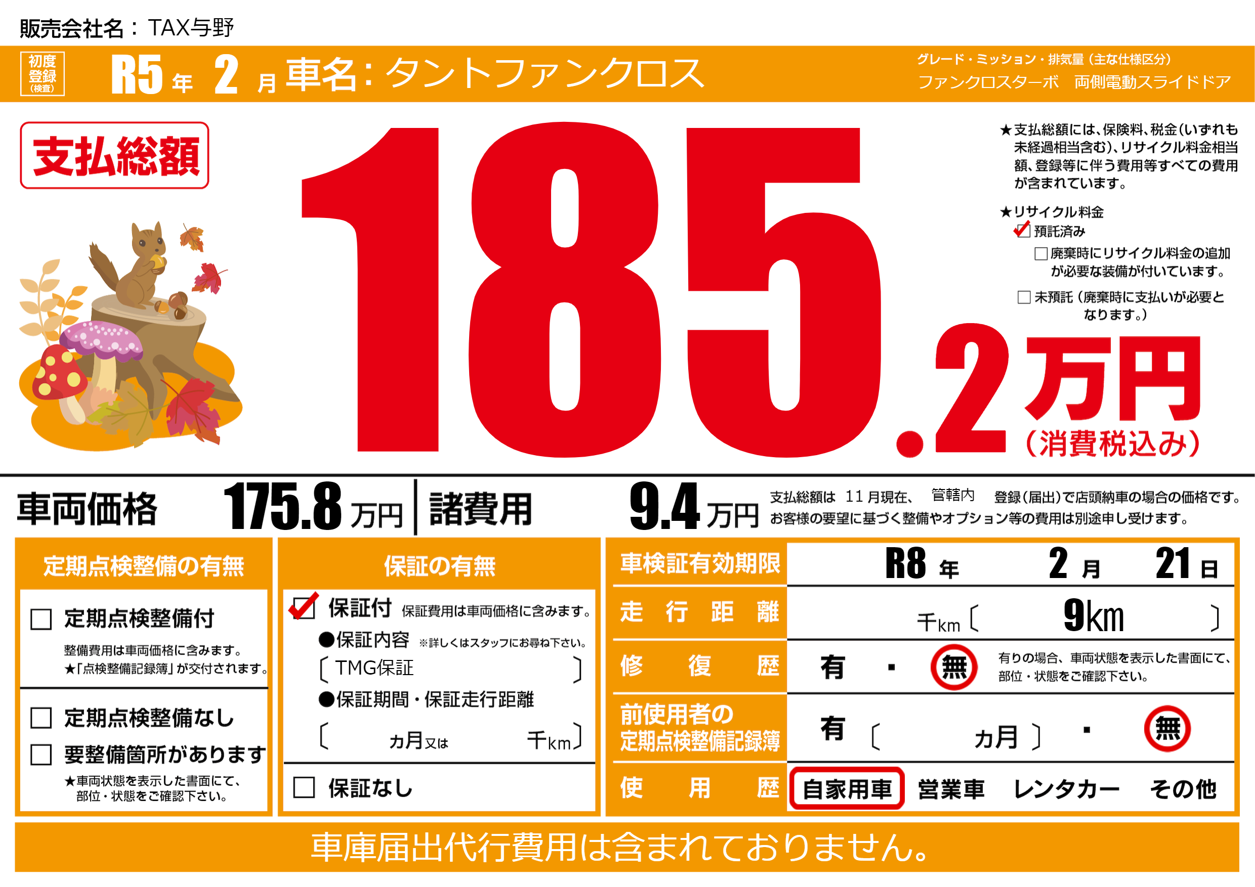 車検制限 R8年 2月 21日