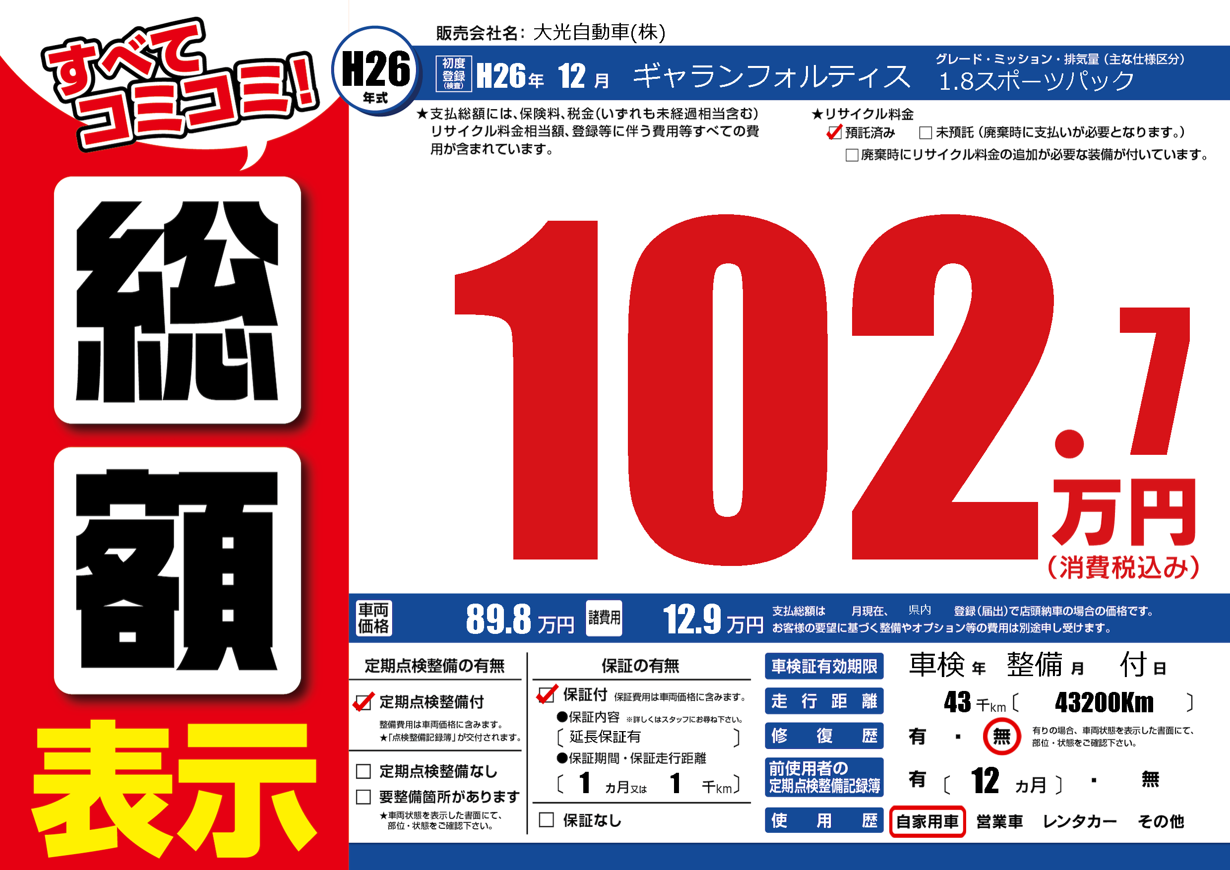 | 走行キロ | 4.3万km | ||