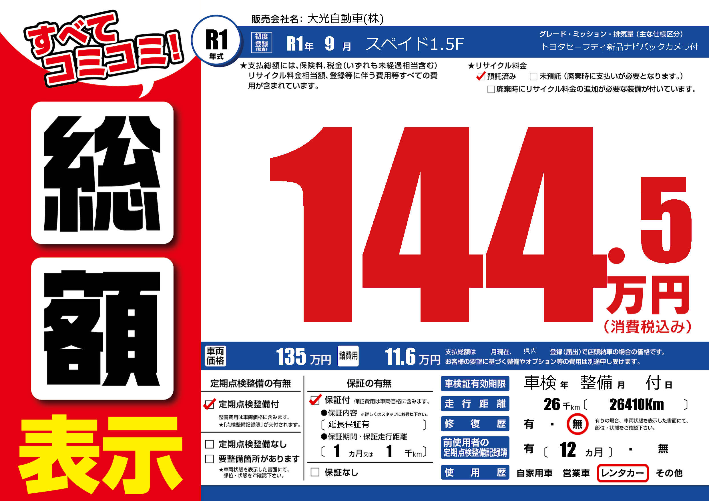 | 定期点検整備 | 定期点検整備あり | ||