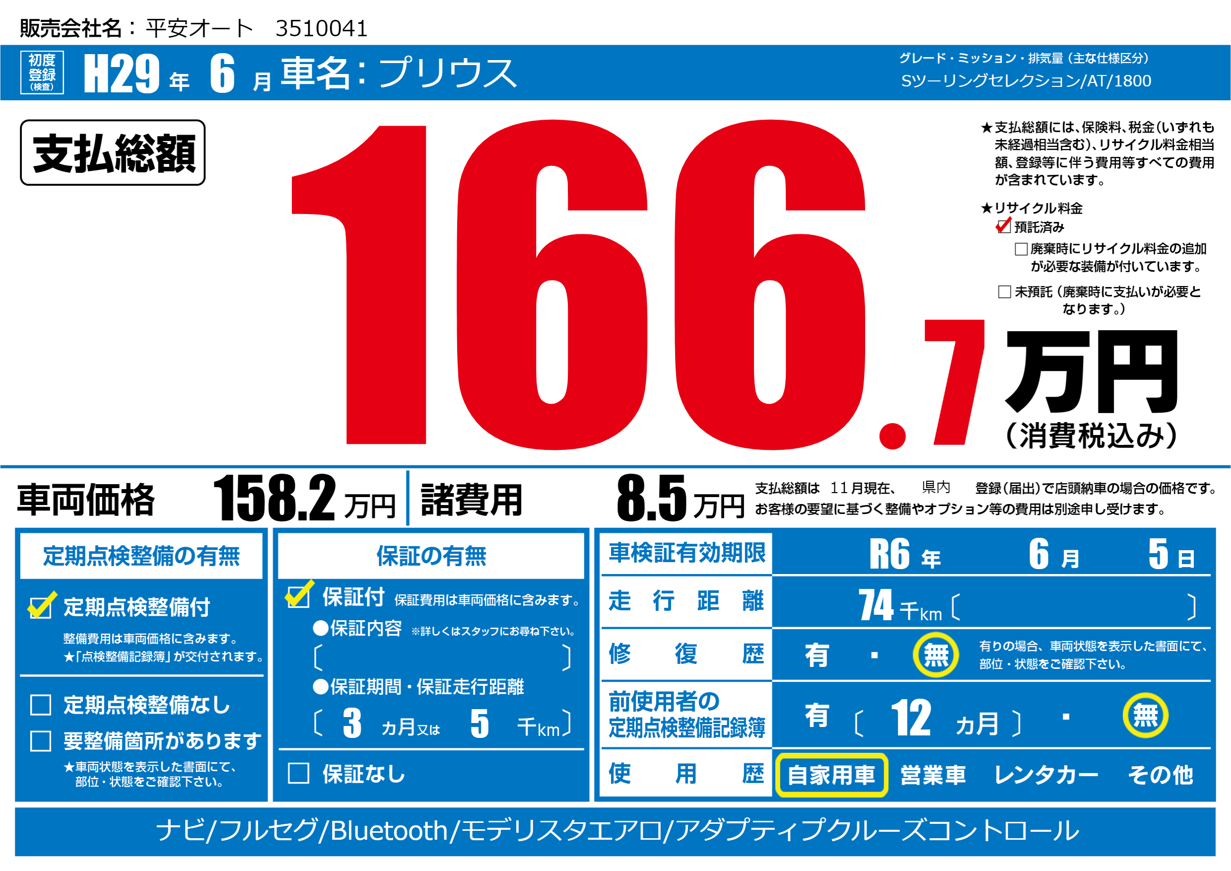 なし | 車検制限 | R6年6月5月 |