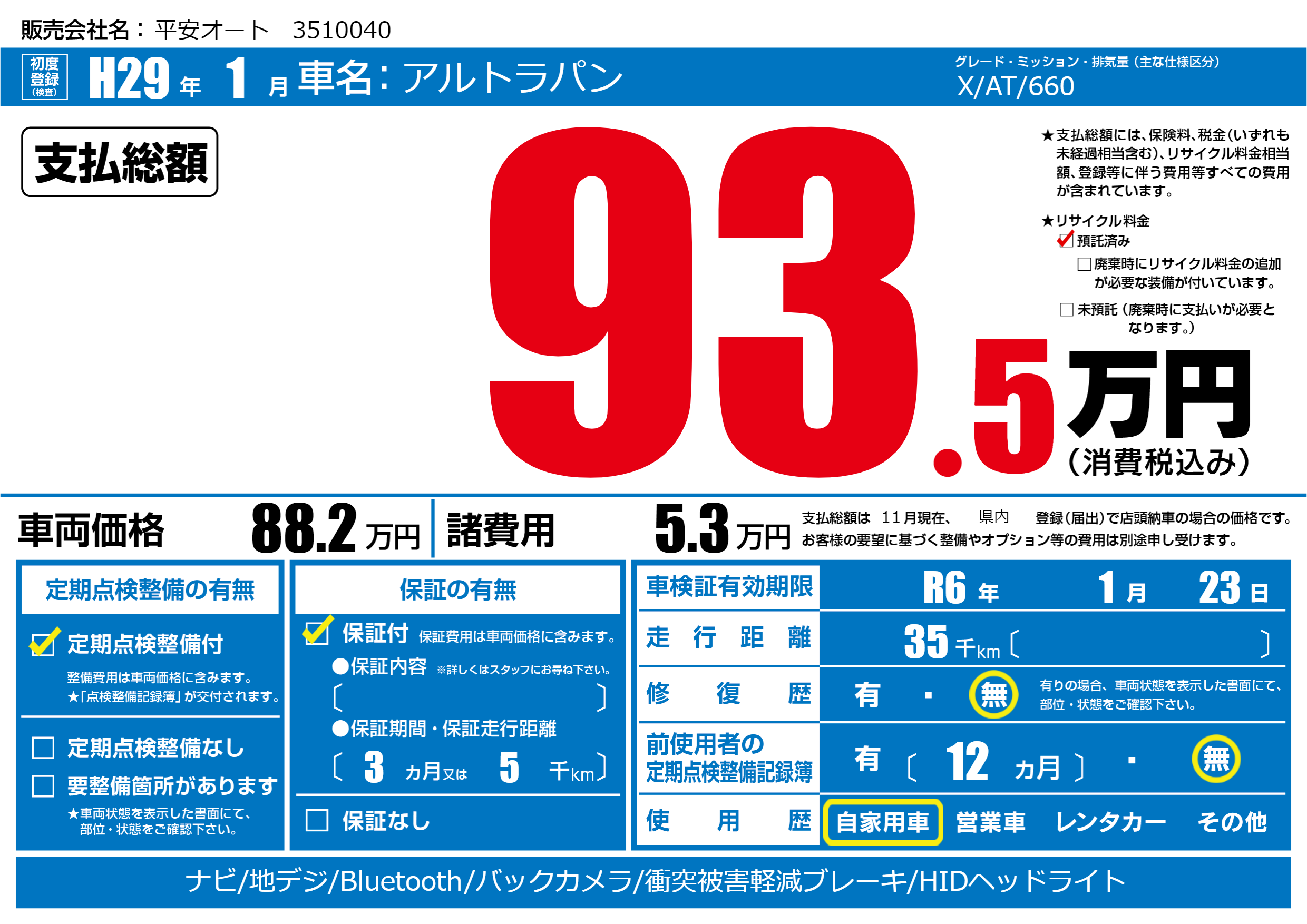 | 車名 | アルトラパン | グレード ミッション 排気量 |