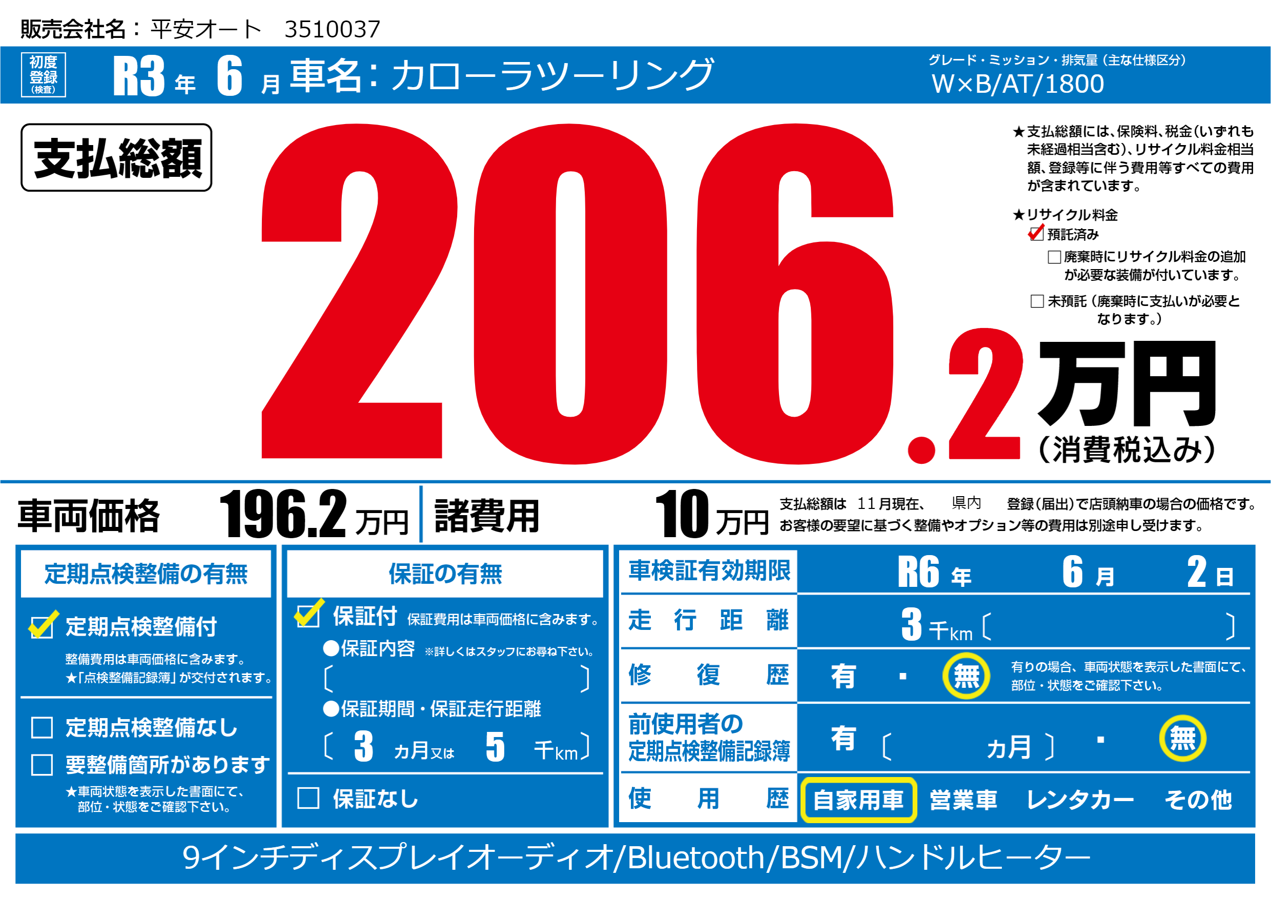 なし | 車検制限 | R6年6月2月 |
