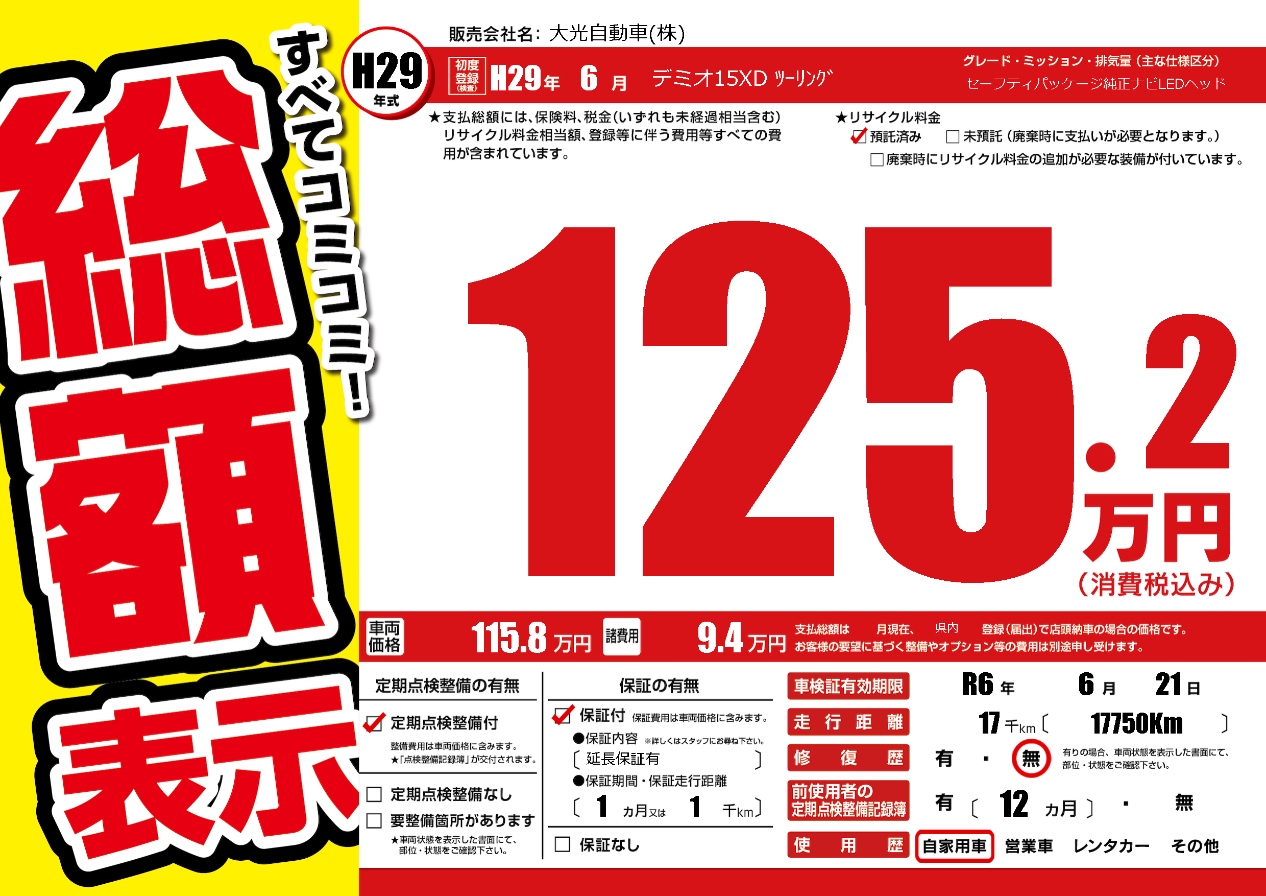 なし | 車検制限 | R6年6月21月 |