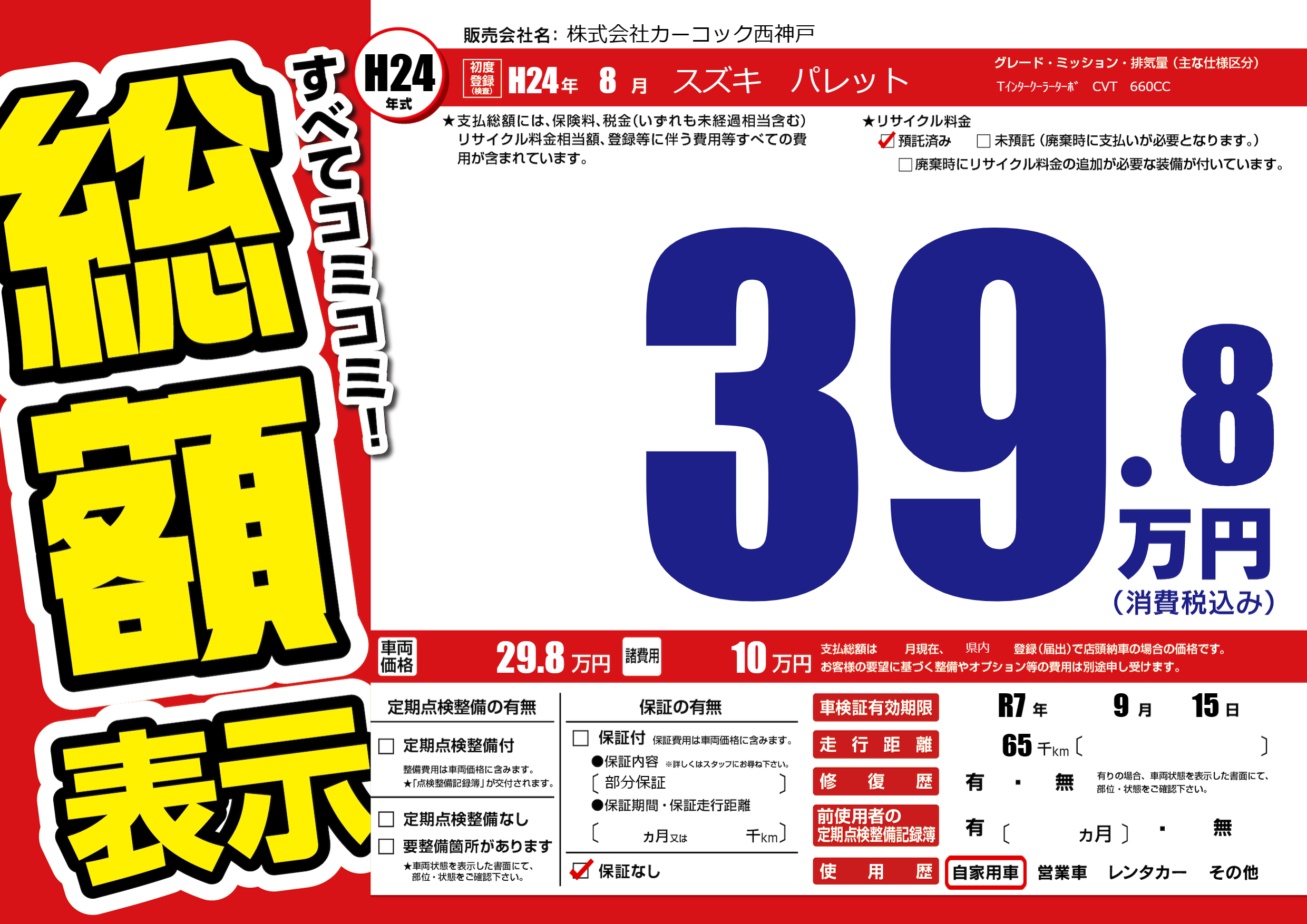 | 車検制限 | R7年 9月 15日 | ||