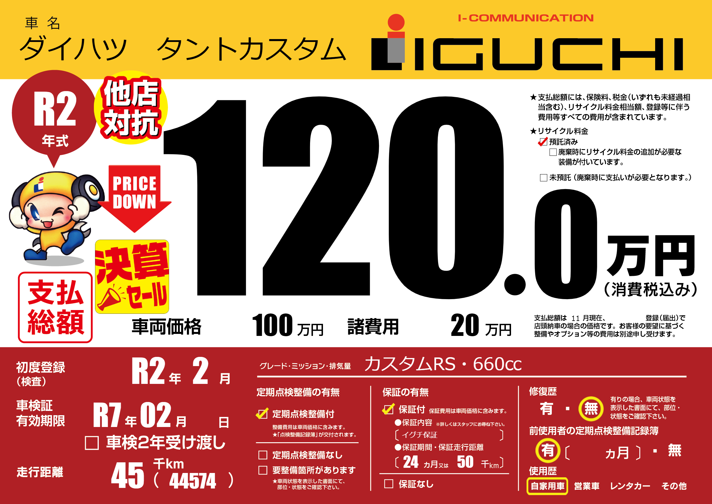 保証付き 保証内容(イグチ保証) 24ヶ月または50千km |