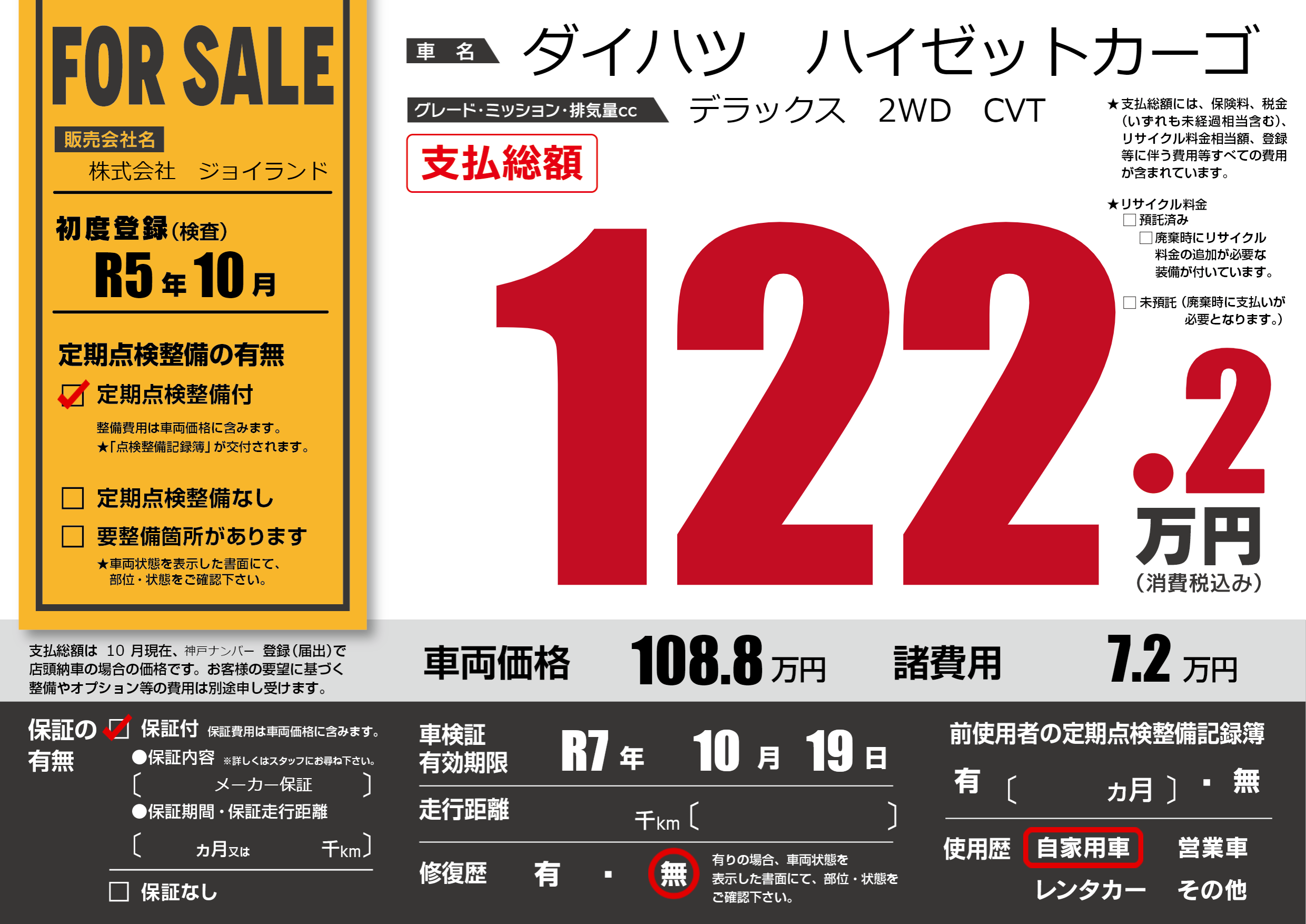 保証付き 保証内容( メーカー保証) ---ヶ月または()千kmまで |