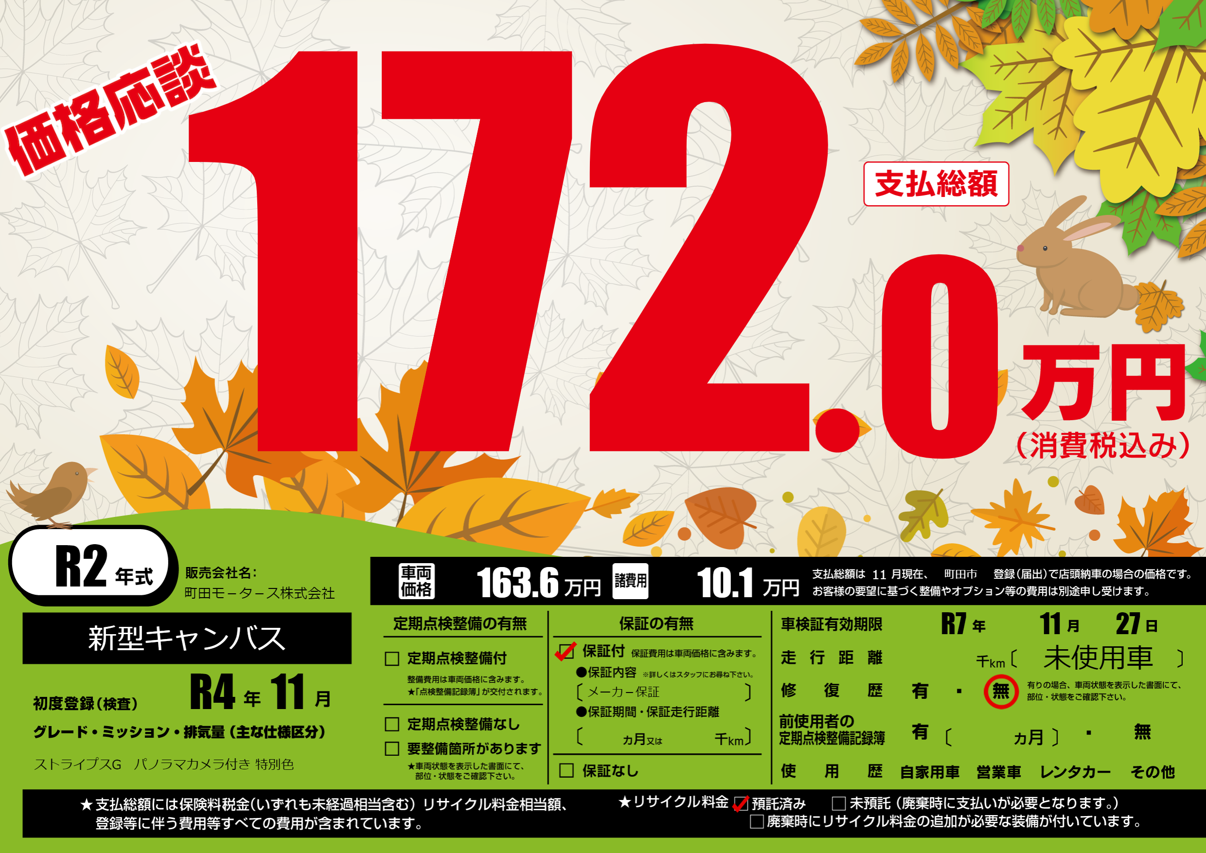 なし | 車検制限 | R7年11月27月 |