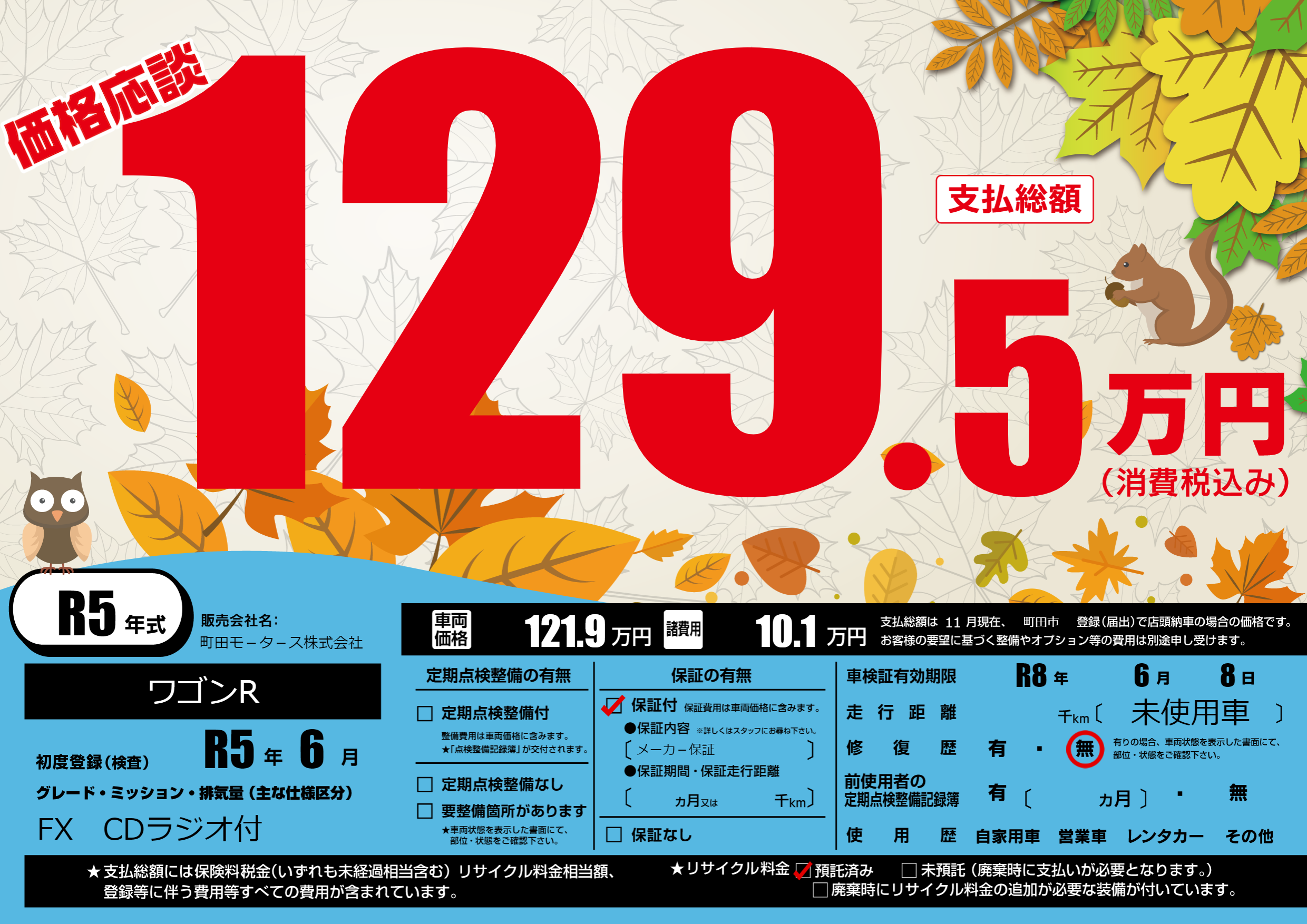 | 車名 | ワゴンR | グレード ミッション 排気量 |