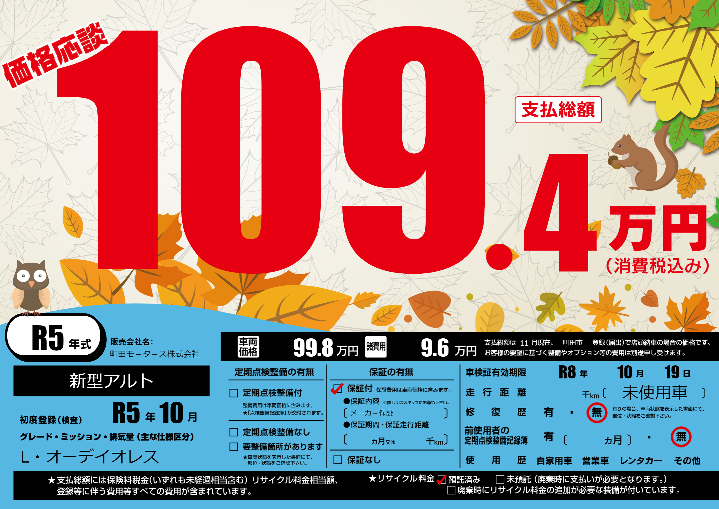 車検制限 R8年 10月 19日