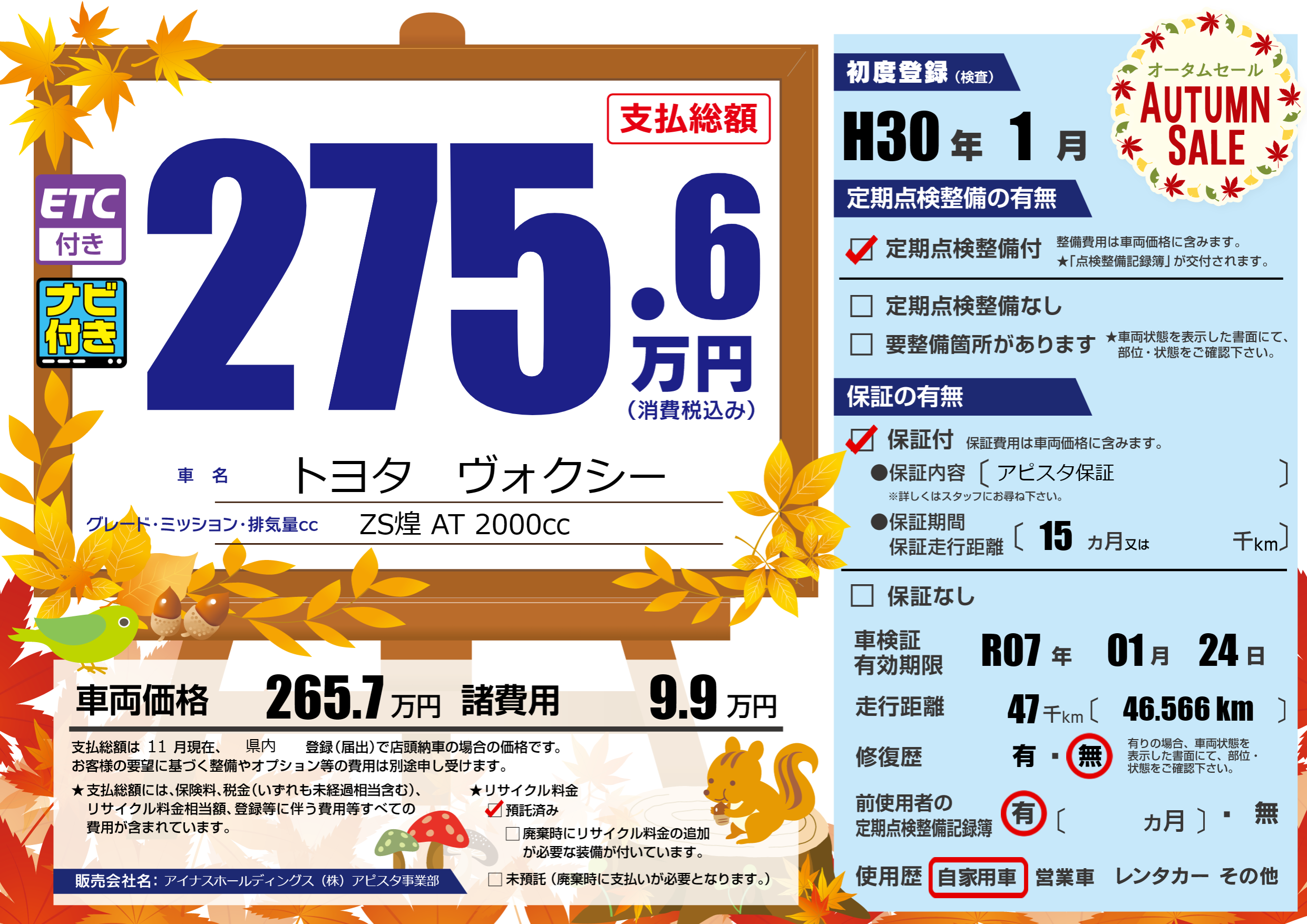 | 走行キロ | 4.7万km | 初年度登録 | H30年1月 |