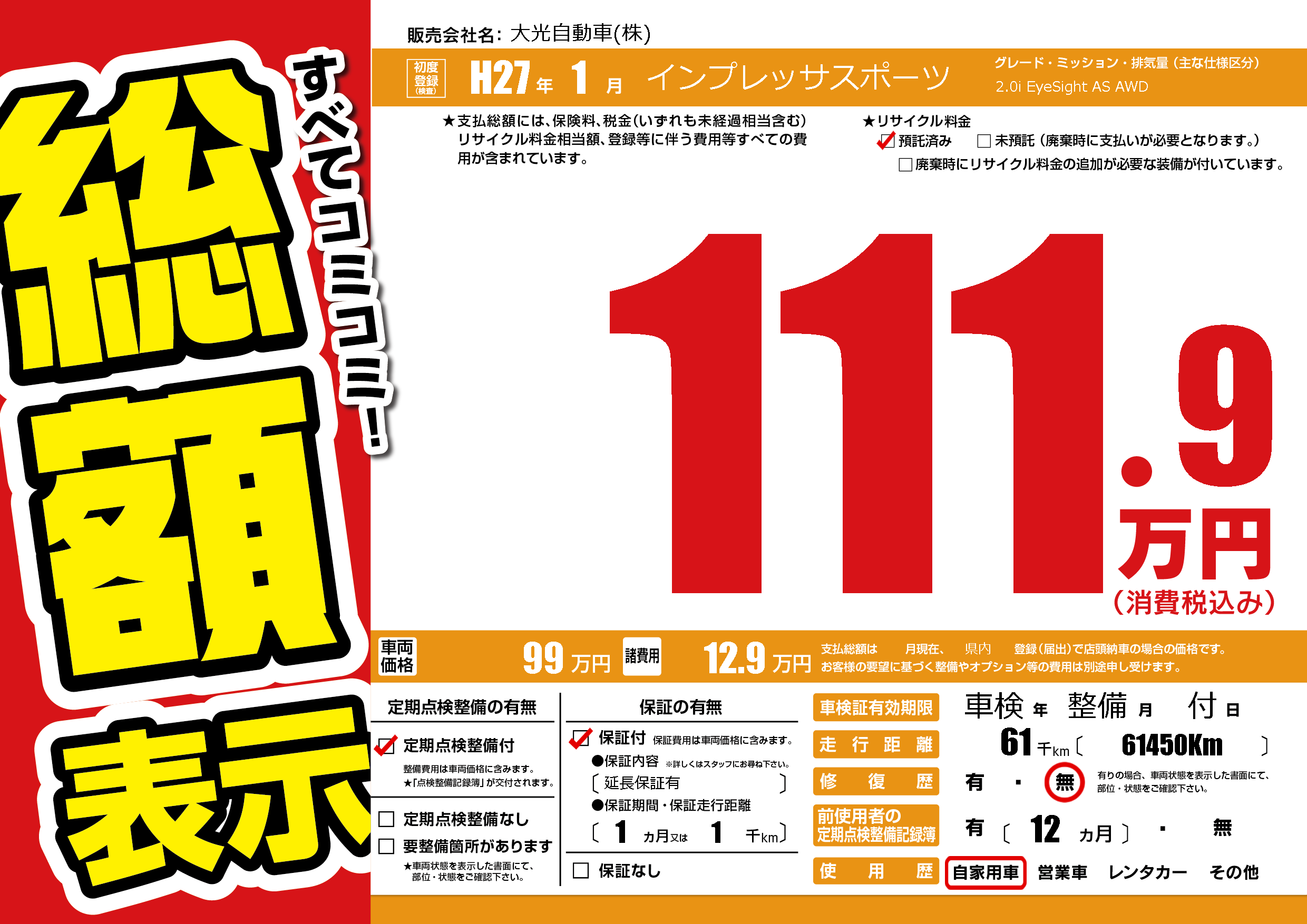 | 定期点検整備 | 定期点検整備あり | ||