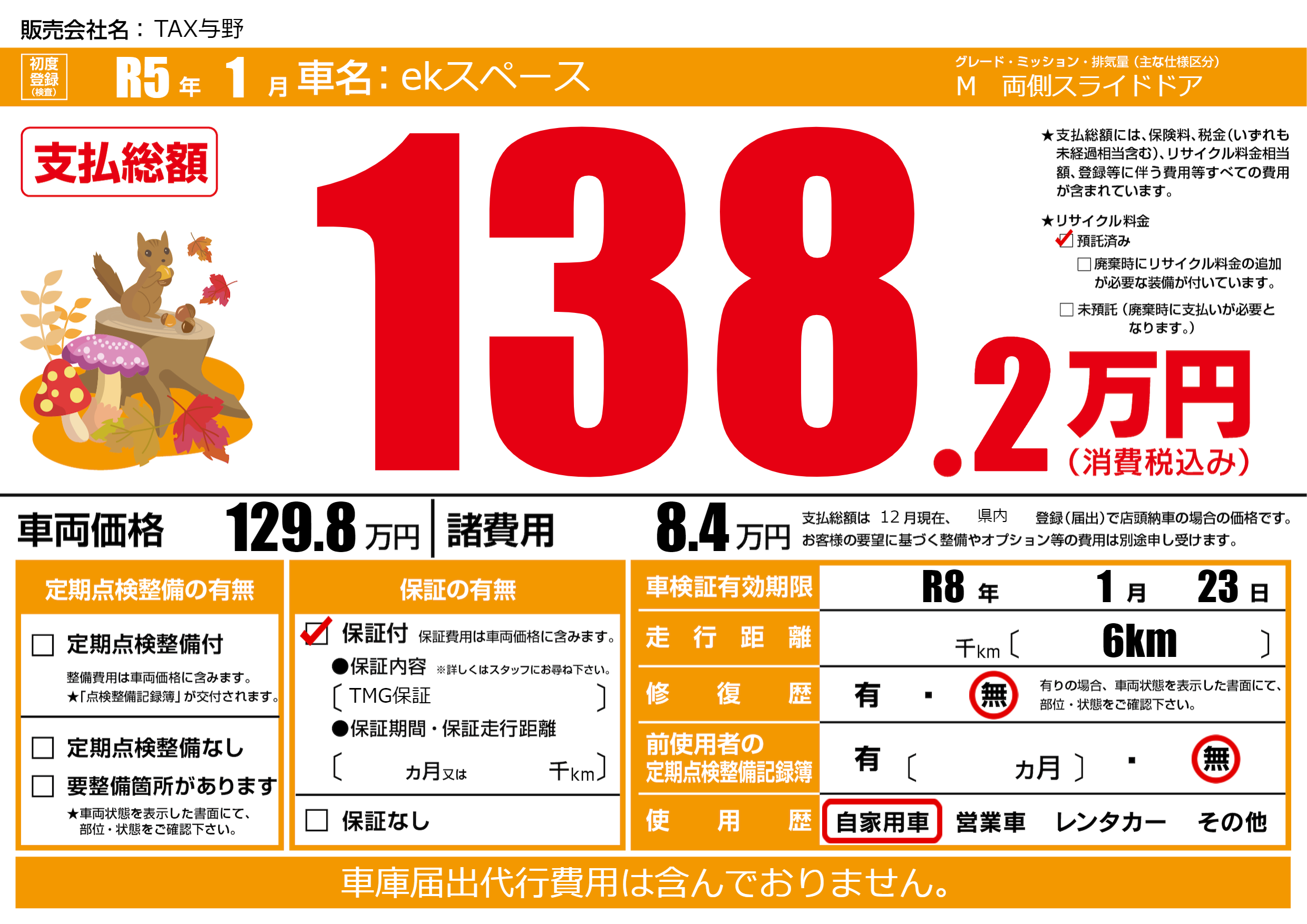 | 車名 | ekスペース | グレード ミッション 排気量 |