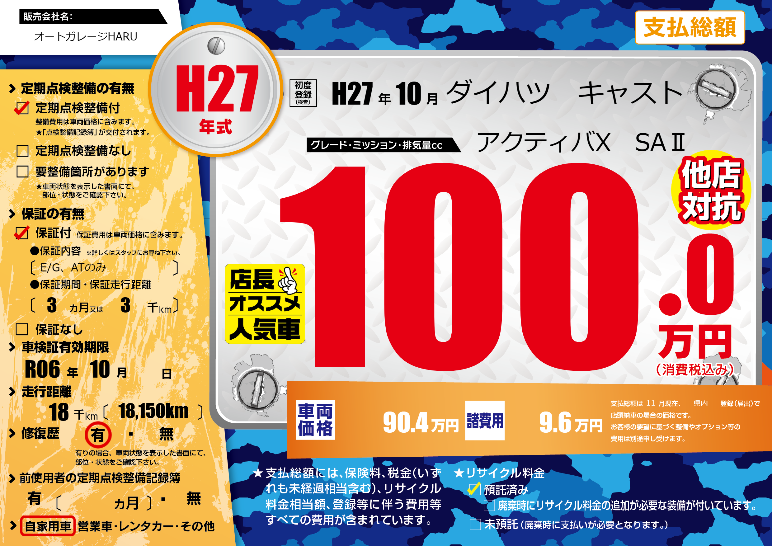 なし | 車検制限 | R06年10月---月 |