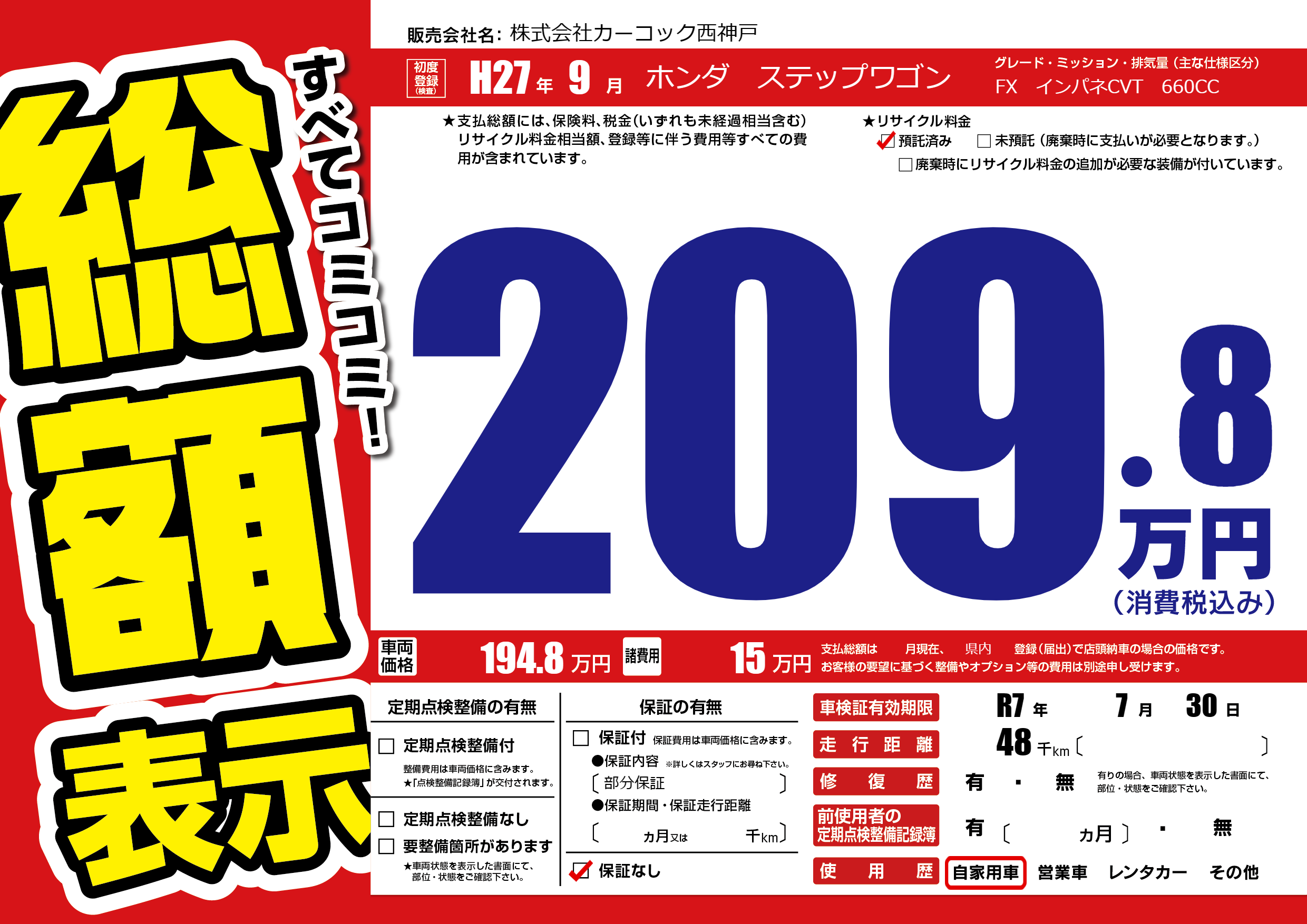 なし | 車検制限 | R7年7月30月 |