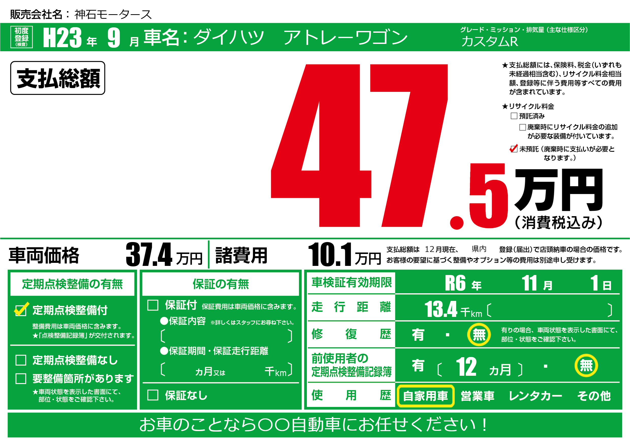 | 定期点検整備 | 定期点検整備あり | ||