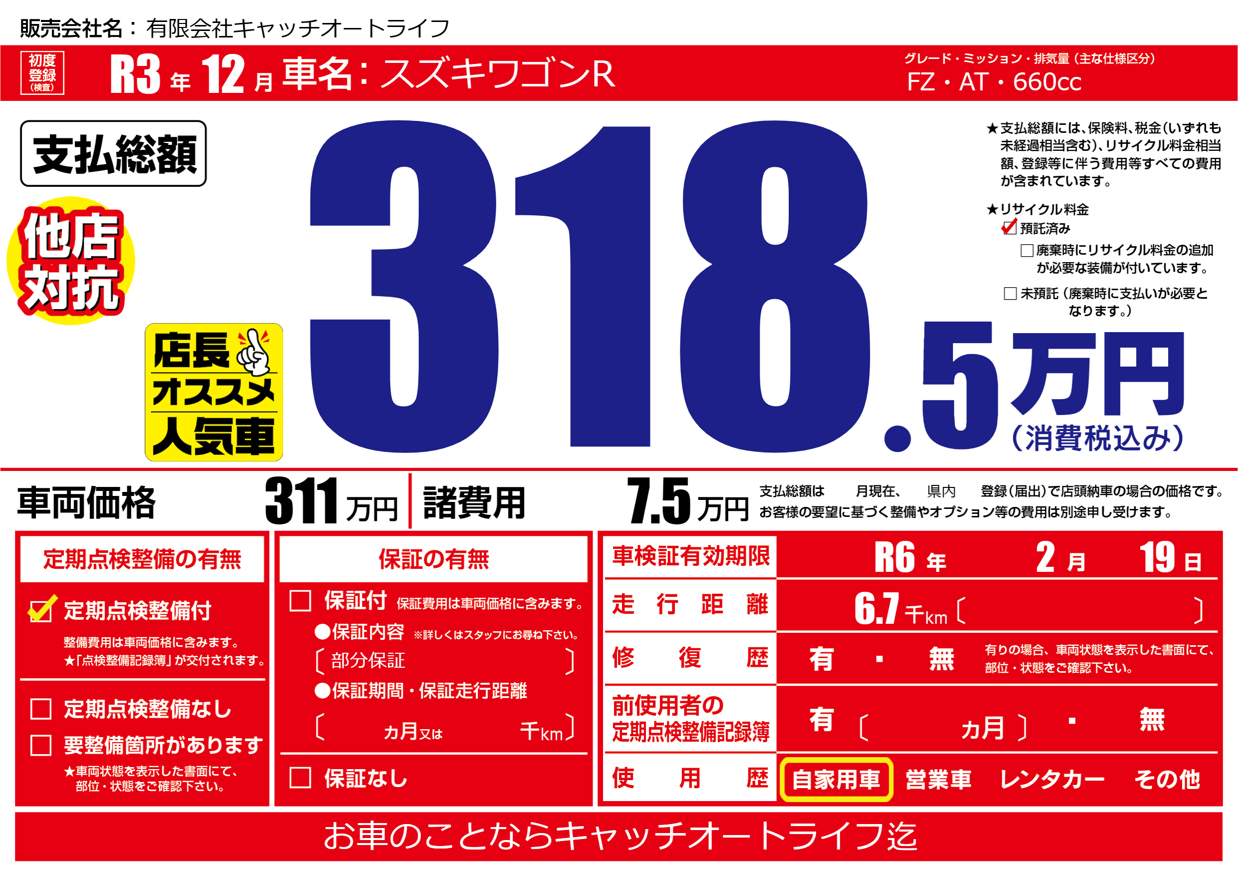 | 車検制限 | R6年 2月 19日 | ||