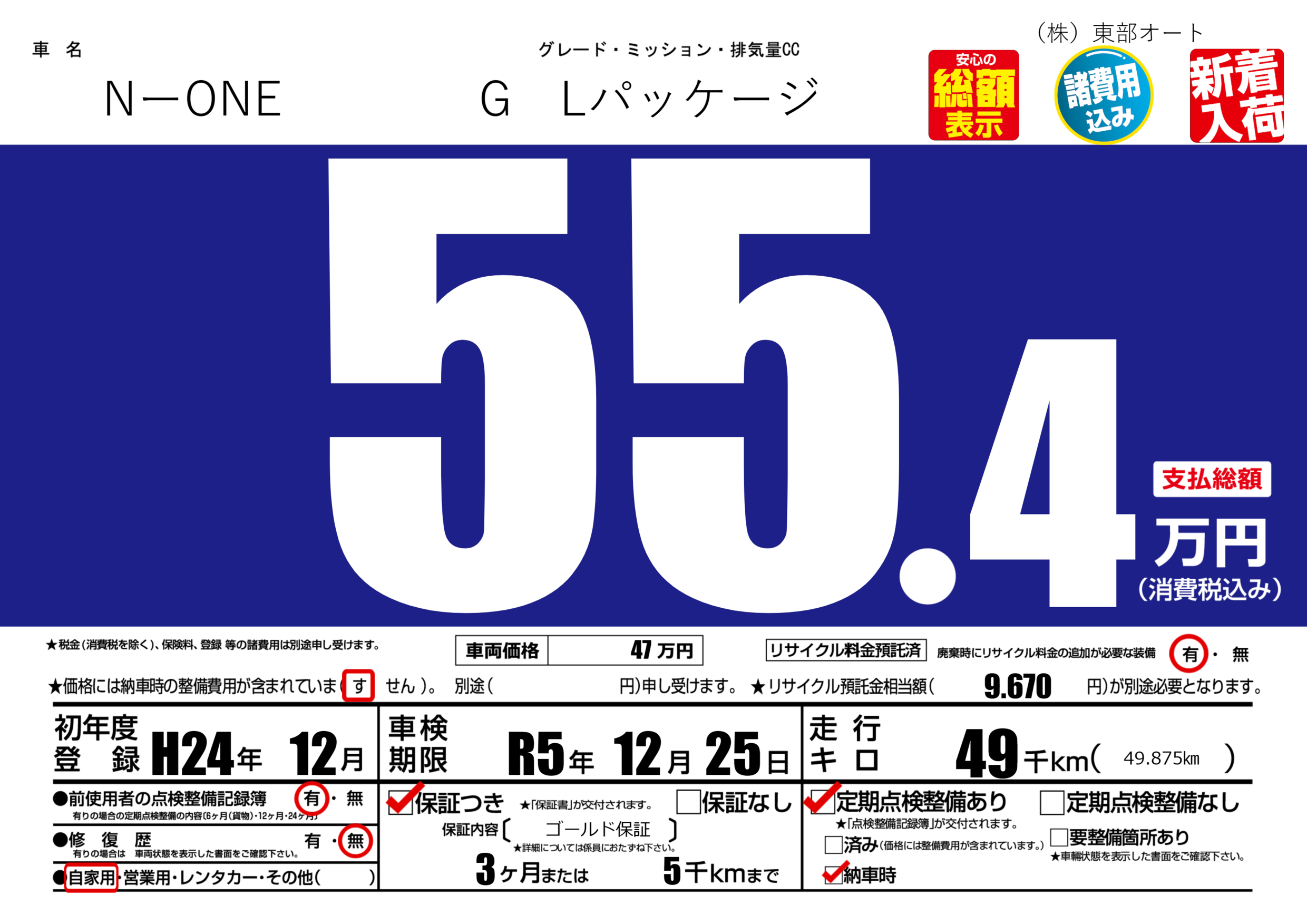| 車名 | NーONE | グレード ミッション 排気量 |