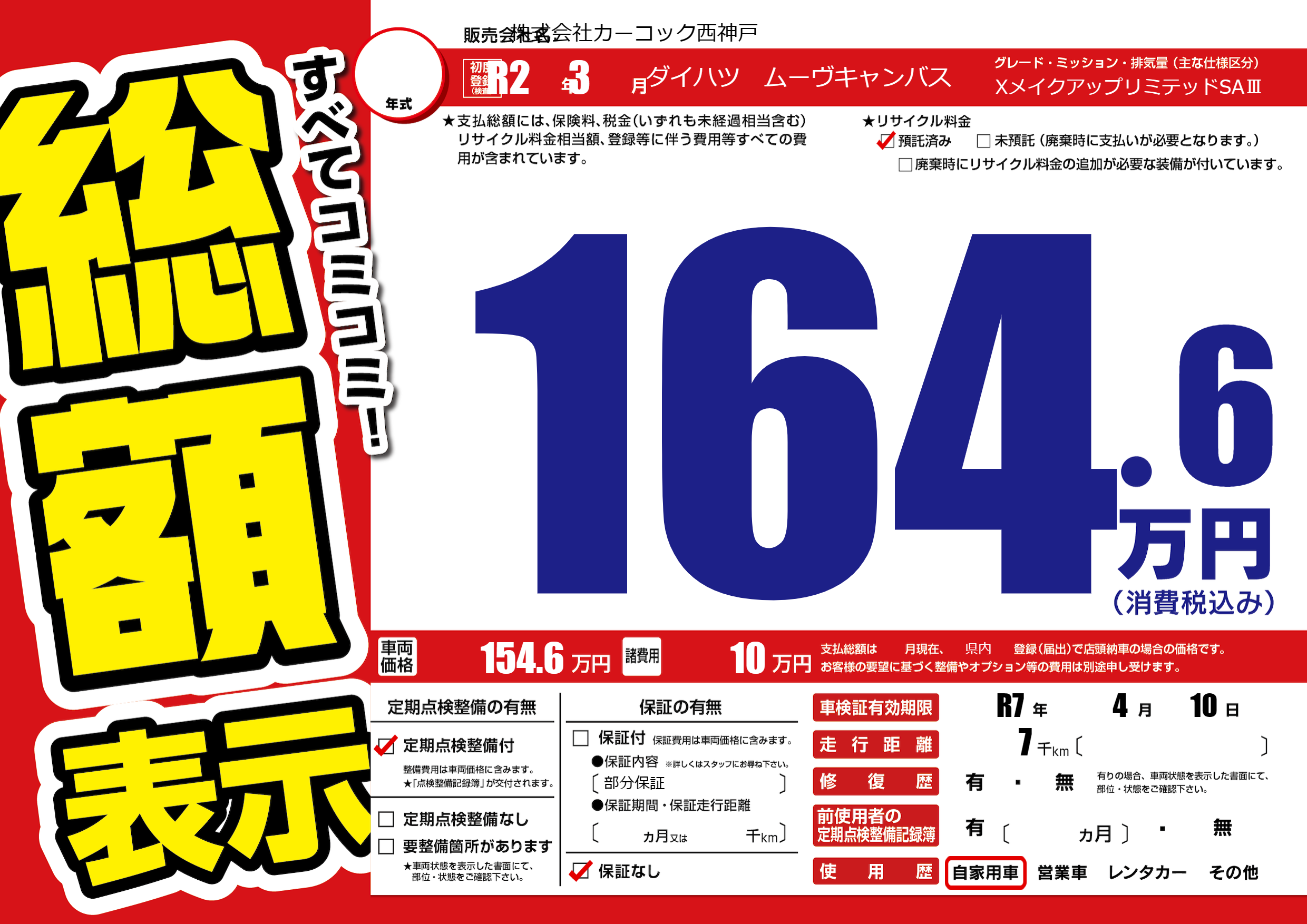 | 走行キロ | 0.7万km | 初年度登録 | R2年3月 |