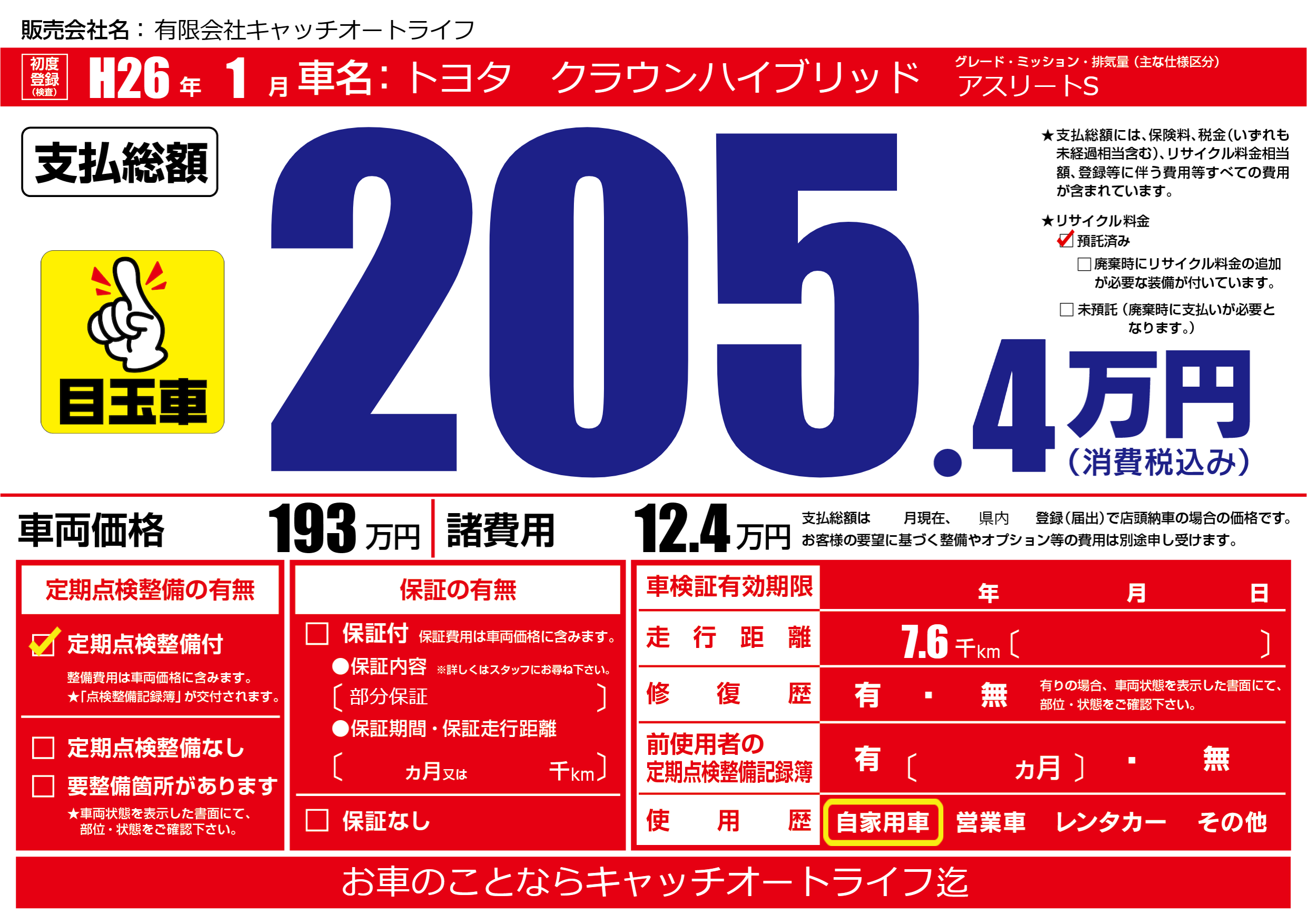 | 車名 | トヨタ クラウンハイブリッド | グレード ミッション 排気量 |