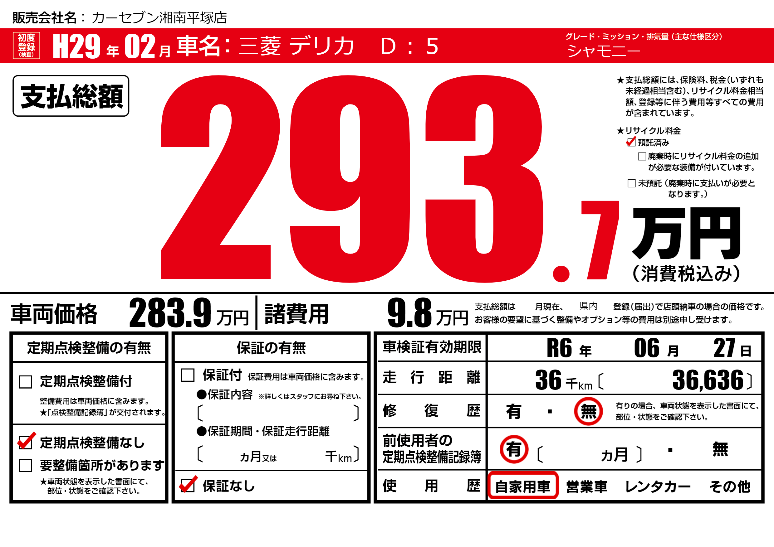 | 車名 | 三菱 デリカ D:5 | グレード ミッション 排気量 |