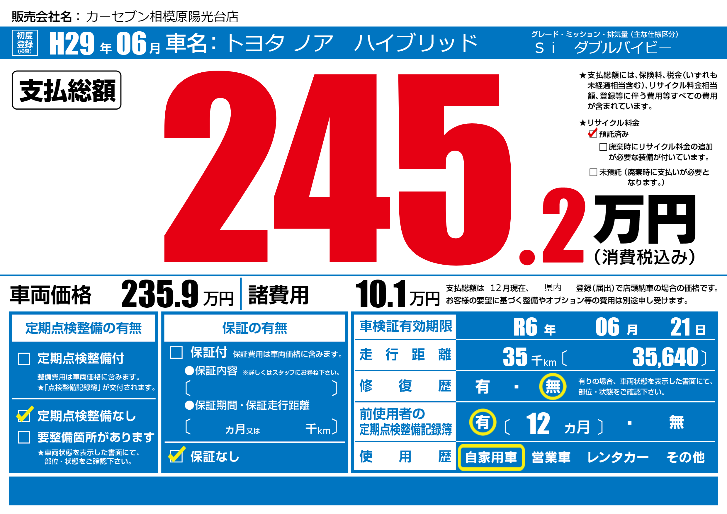 | 車検制限 | R6年 06月 21日 | ||