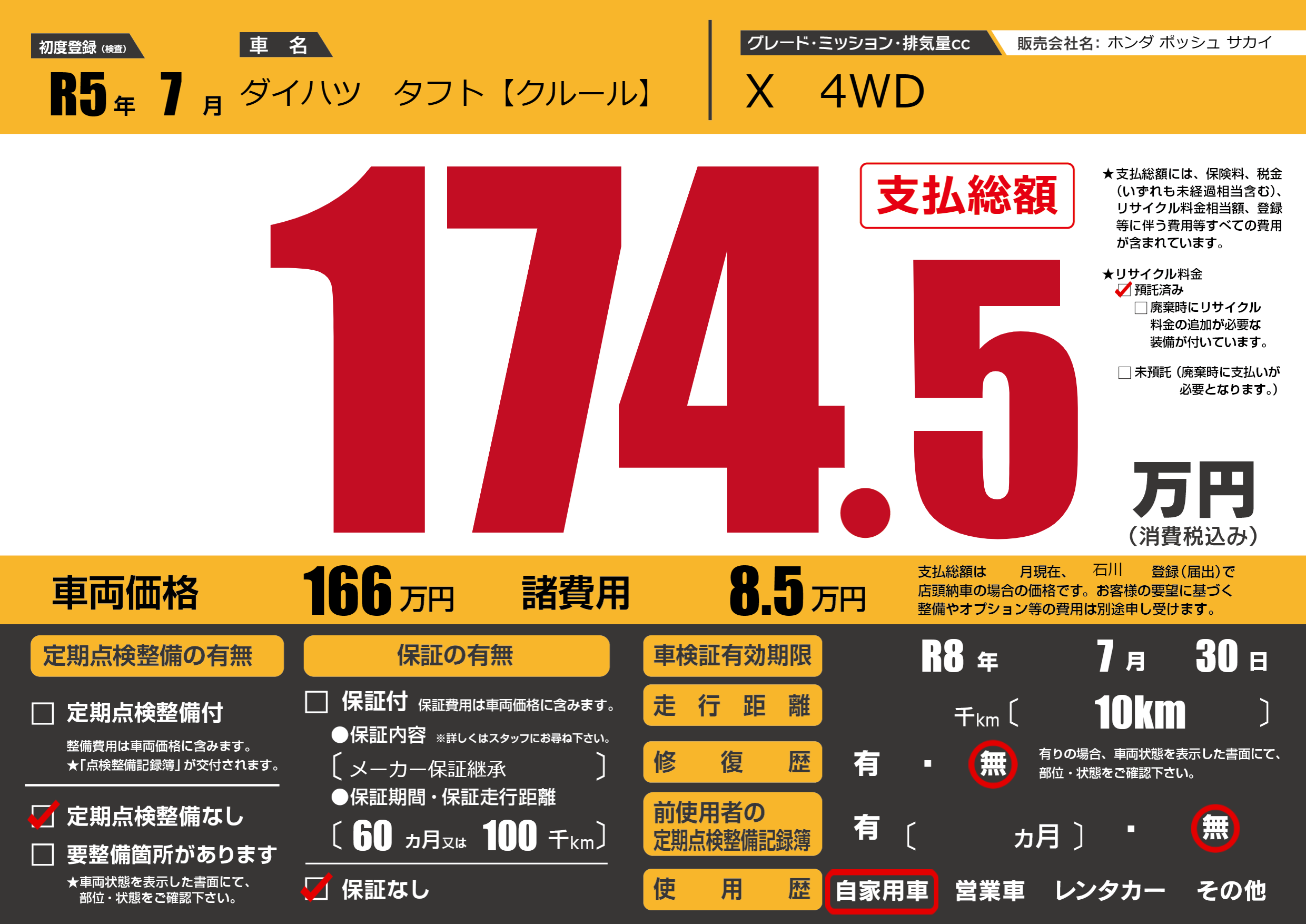 | 走行キロ | - | 初年度登録 | R5年7月 |