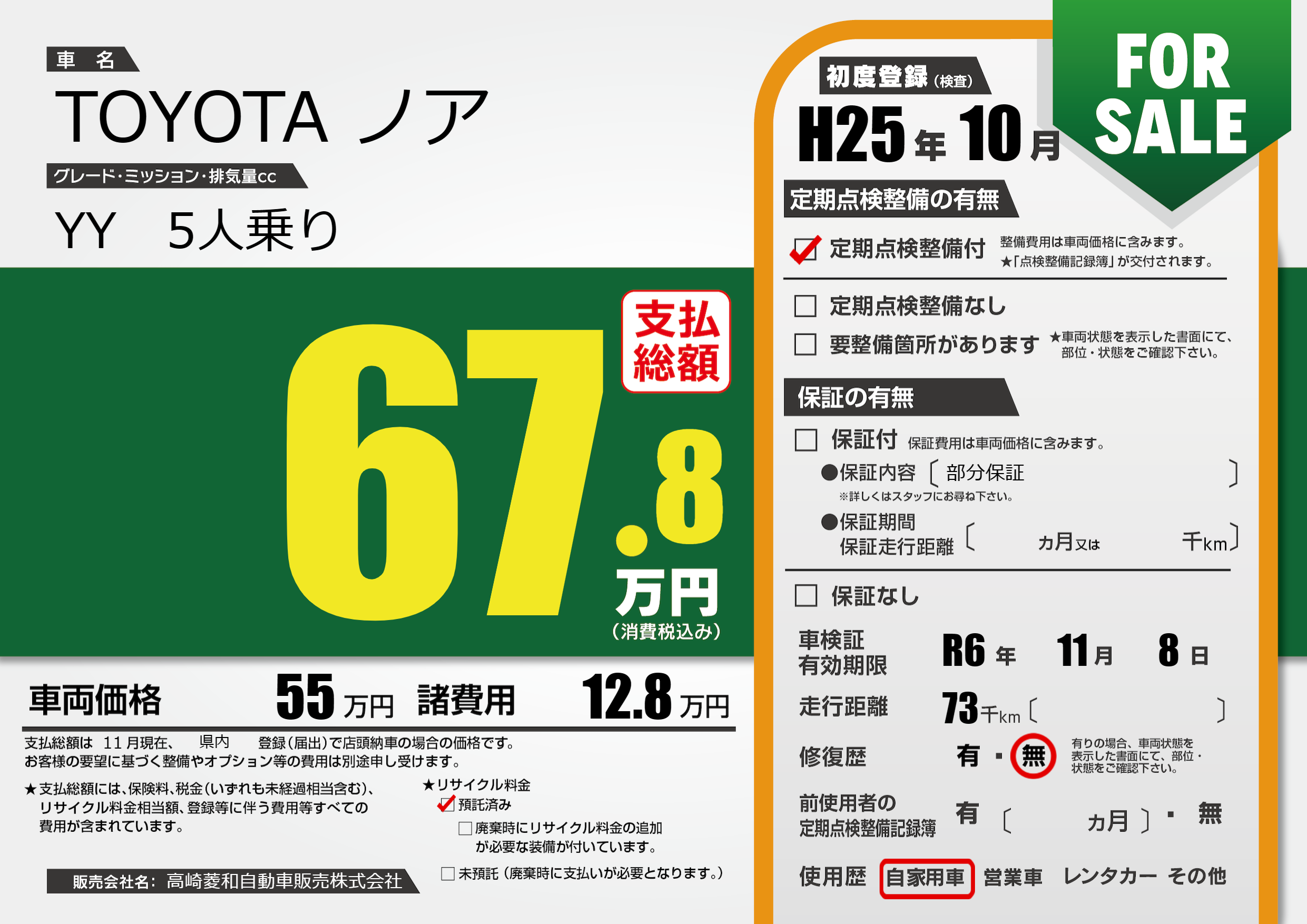| 車検制限 | R6年 11月 8日 | ||
