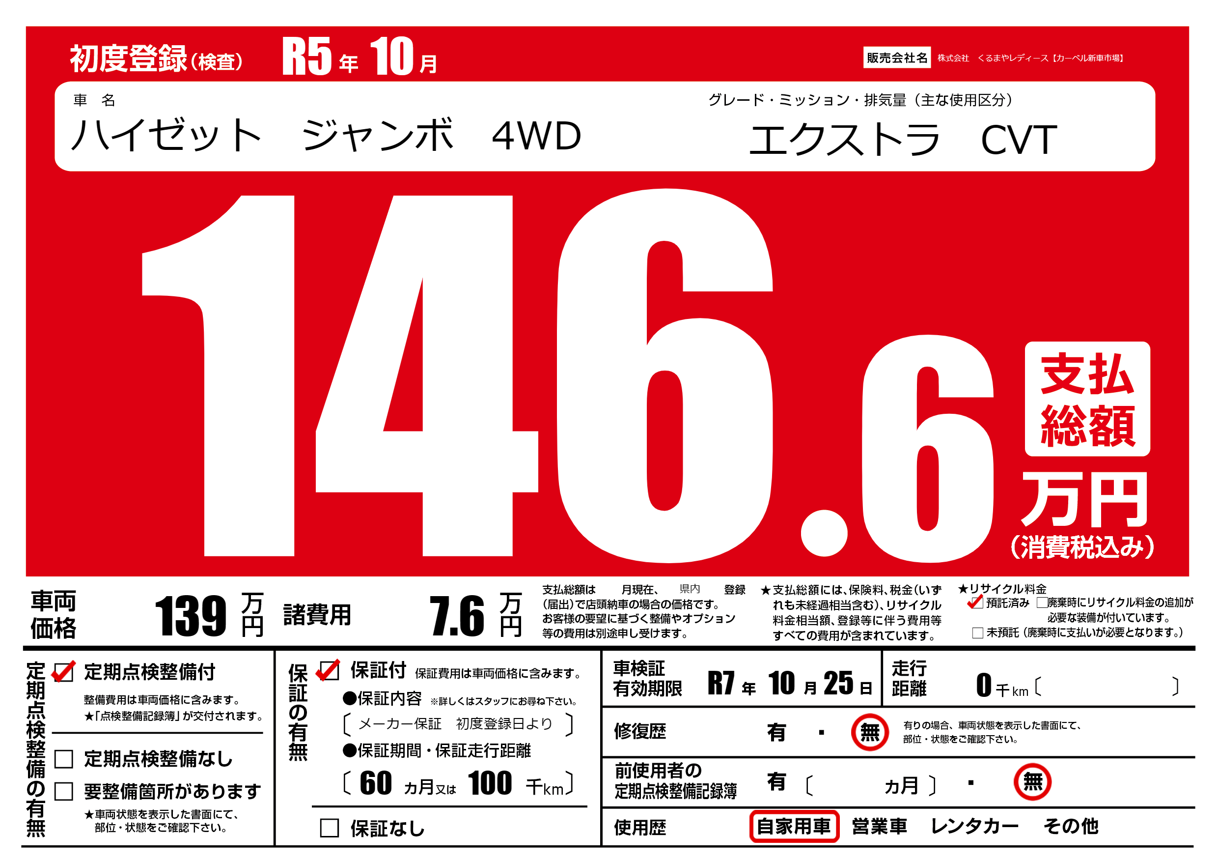 | 走行キロ | - | 初年度登録 | R5年10月 |